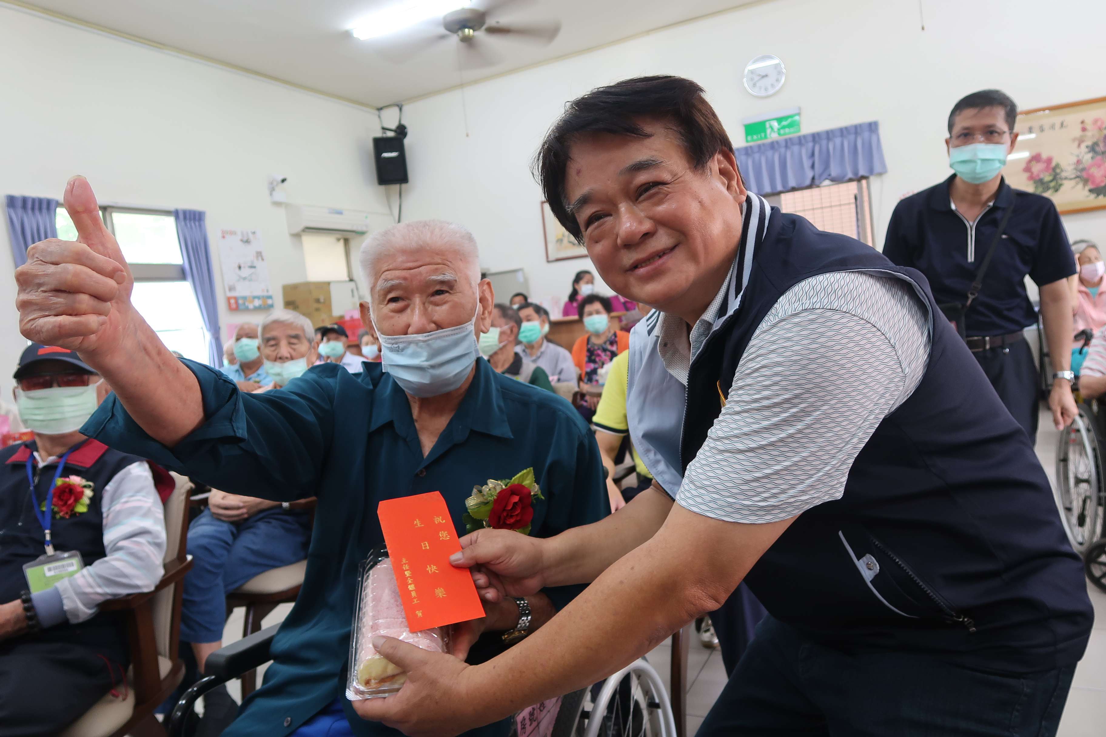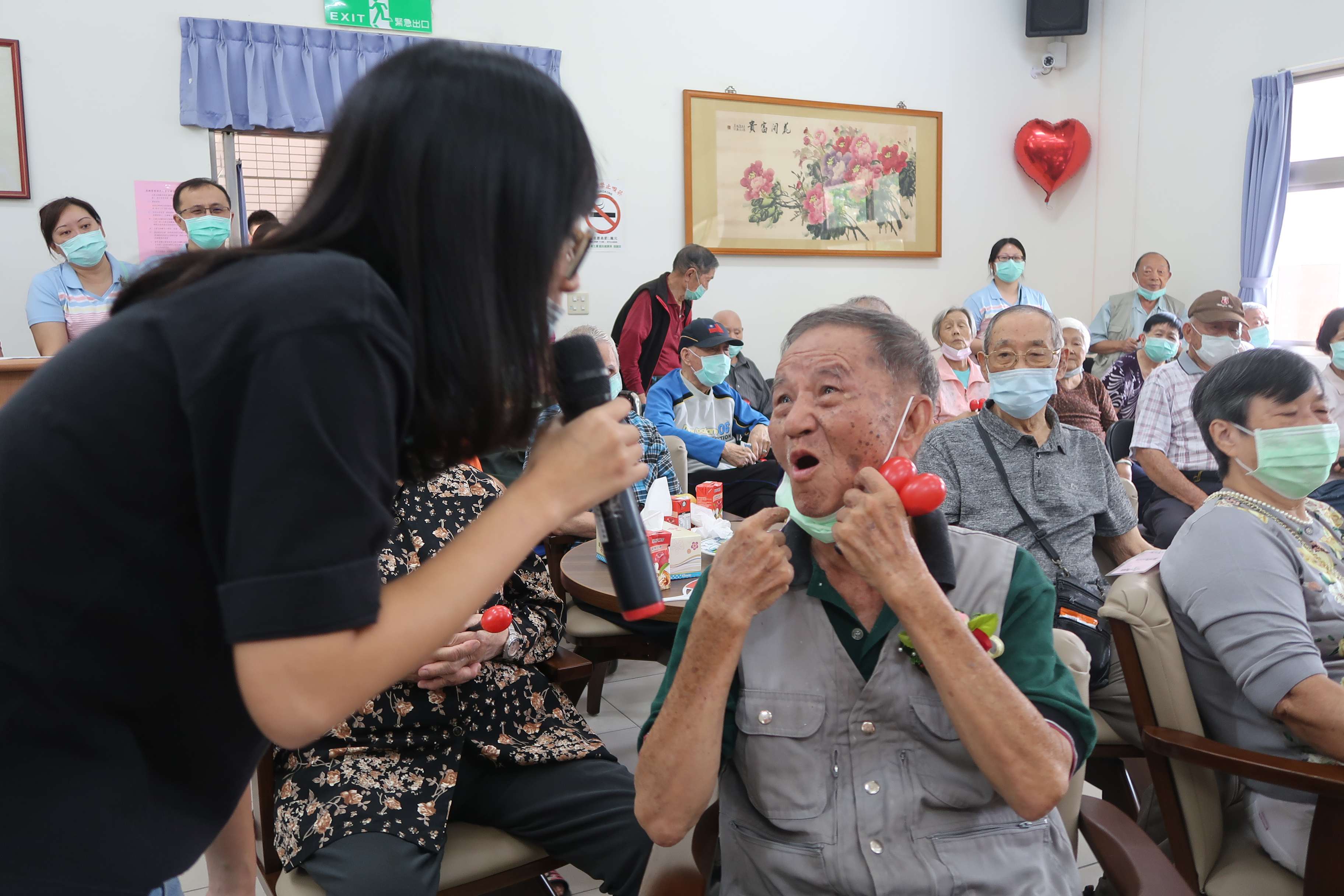 10月27日中山大學音樂系李美文教授特別帶領14位跨系組學生蒞高雄榮家,一起為10月份住民壽星慶生,帶來充滿活力與歡樂的表演,陪伴榮家爺爺奶奶們歡慶生日! 高齡97歲姜伯伯在副主任陪同下許願、切蛋糕,姜伯伯第一次當壽星代表,開心全寫在臉上,老人家祝福所有壽星福如東海、壽比南山。壽星高大哥首先演唱《愛拚才會贏》為娛興節目拉開序幕,新入住壽星施阿姨大方上台演唱《王昭君》,高亢美妙歌聲獲得台下熱烈掌聲,也讓大學生們見識到榮家長輩們的歌唱實力,大讚爺爺奶奶們寶刀未老。 大新保全蔡金葉董事長向來熱心參與公益,且關懷榮民長輩,特別捐贈榮家8張休閒桌,讓長輩們今天慶生會場更舒適。蔡董事長來到會場向長輩們祝壽,演唱《甜蜜蜜》珠圓玉潤的歌聲,讓長輩們大讚蔡董人美、心善、歌聲好,忍不住大喊安可! 中山大學學生接力PK,結合各種樂器演出,同學們演唱《紅蜻蜓》帶著長輩們跟著輕快的音樂節奏,一起用沙鈴打節拍,長輩們開心高舉雙手,搖著沙鈴一起亨唱。接著同學們輪流上台表演《何日君再來》、《在水一方》等歌曲;同學高舉「法國號」問長輩們是什麼樂器?施阿姨馬上舉手答:法國號,讓這群中山大學師生好讚嘆!更邀請施阿姨上台與學生合唱。 學生們也用心準備《外婆的澎湖灣》大海報,表演吉他自彈自唱,並邀請長輩們分享內心最懷念的事物或場景。84歲李伯伯指著大海報說:就是澎湖了,那裡有他親愛的孫子。李伯獲邀上台一起演唱這首別具意義的歌曲,獲得熱烈掌聲。最後,同學們用長輩們最熟悉的小鄧歌曲《月亮代表我的心》為慶生會劃上句點,把滿滿的祝福獻給榮家爺爺奶奶們! 高雄榮家查國良副主任特別致贈蔡金葉董事長感謝狀,感謝她對榮民長輩的愛護;也感謝中山大學師生用心演出,讓慶生茶會更熱鬧,也讓長輩們感染青年學子的青春與活力,祝福長輩們生日快樂、天天開心! 相關照片