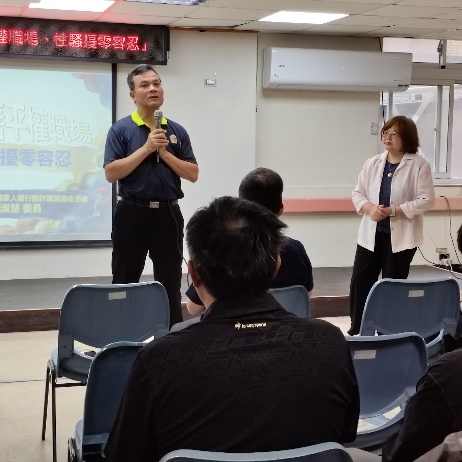 講座亦針對「性騷擾防治三法」之適用關係與《性別平等工作法》進行說明,釐清不同情境下之適用法規與處理原則,並強調職場中應避免性別歧視、性騷擾及不當差別待遇。講師指出,友善平權職場並非僅止於人際和諧,而是需透過制度保障每位工作者的人格尊嚴,確保免於歧視、性騷擾與報復行為,並保障申訴權益。
