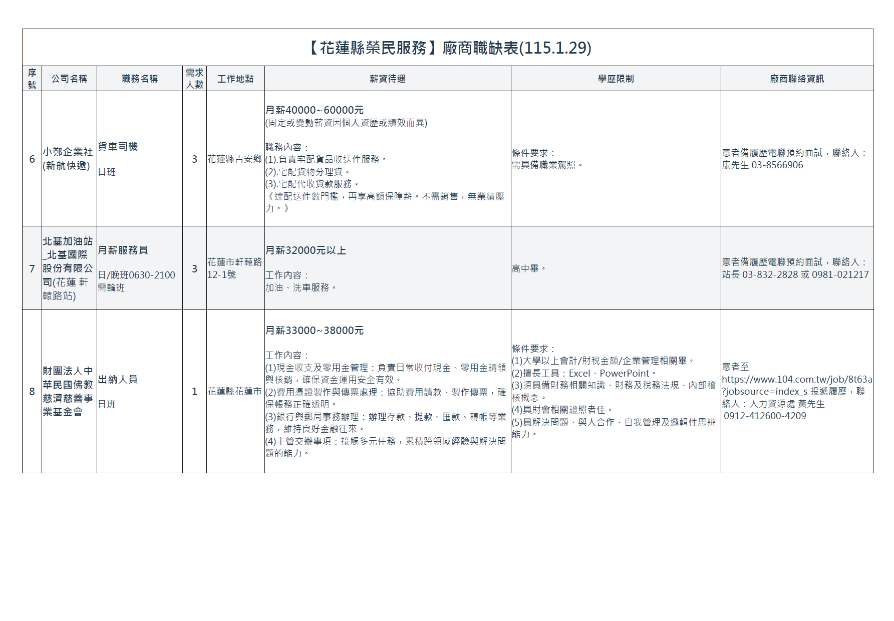 | 【花蓮縣榮民服務處】廠商職缺表(115.1.29).pdf | 115-01-30 | 1 |