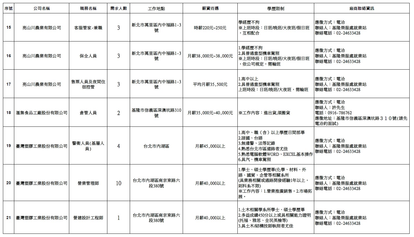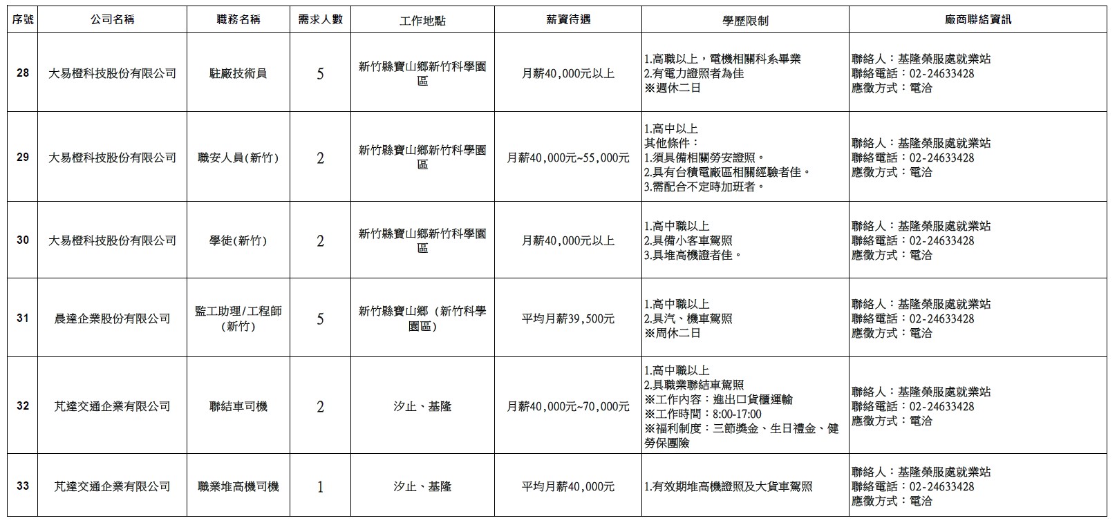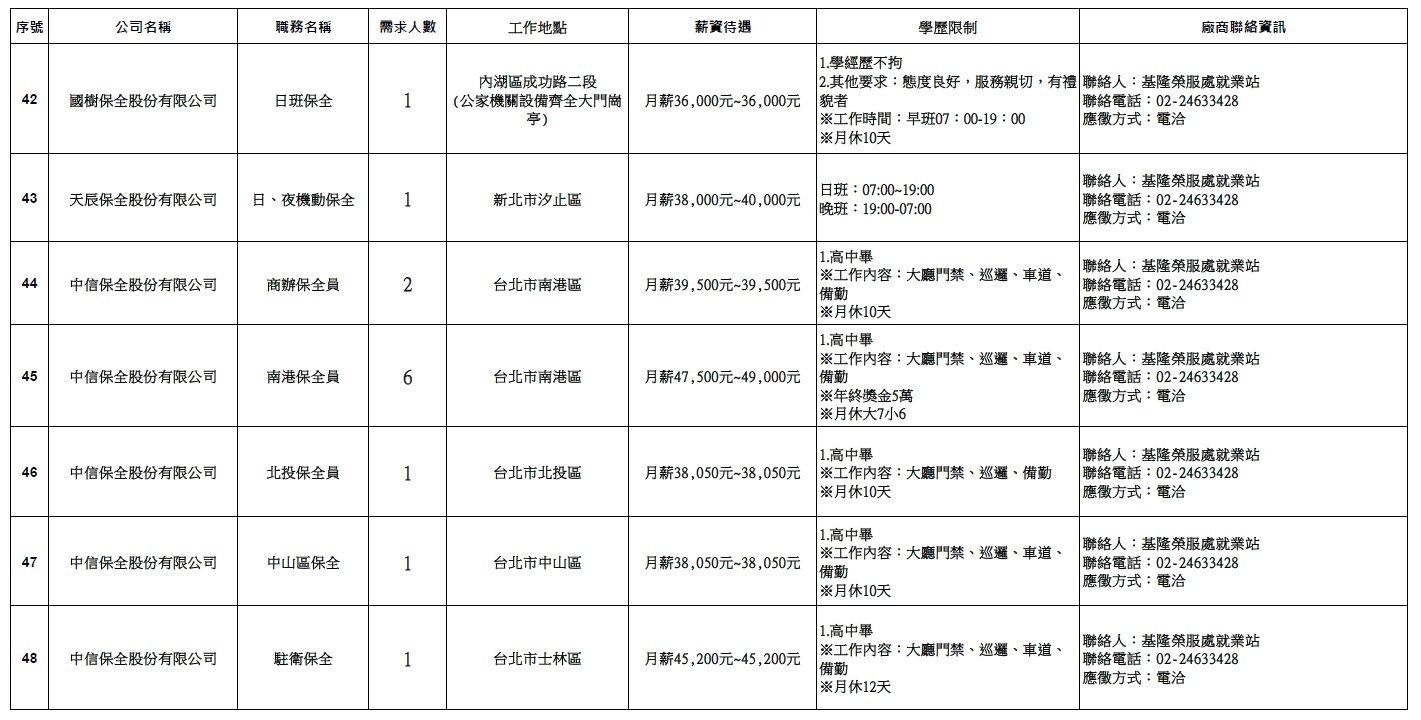 發布日期:114-10-14 資料來源:基隆市榮民服務處 【基隆市榮服處】廠商職缺表(114.10.14)-1 相關照片 【基隆市榮服處】廠商職缺表(114.10.14)-2 【基隆市榮服處】廠商職缺表(114.10.14)-3 【基隆市榮服處】廠商職缺表(114.10.14)-4 【基隆市榮服處】廠商職缺表(114.10.14)-5 【基隆市榮服處】廠商職缺表(114.10.14)-6 【基隆市榮服處】廠商職缺表(114.10.14)-7 附件下載 檔案名稱 更新日期 下載次數 【基隆市榮服處】廠商職缺表(114.10.14).pdf 114-10-14 5