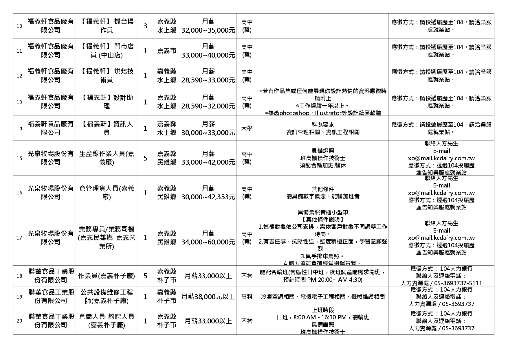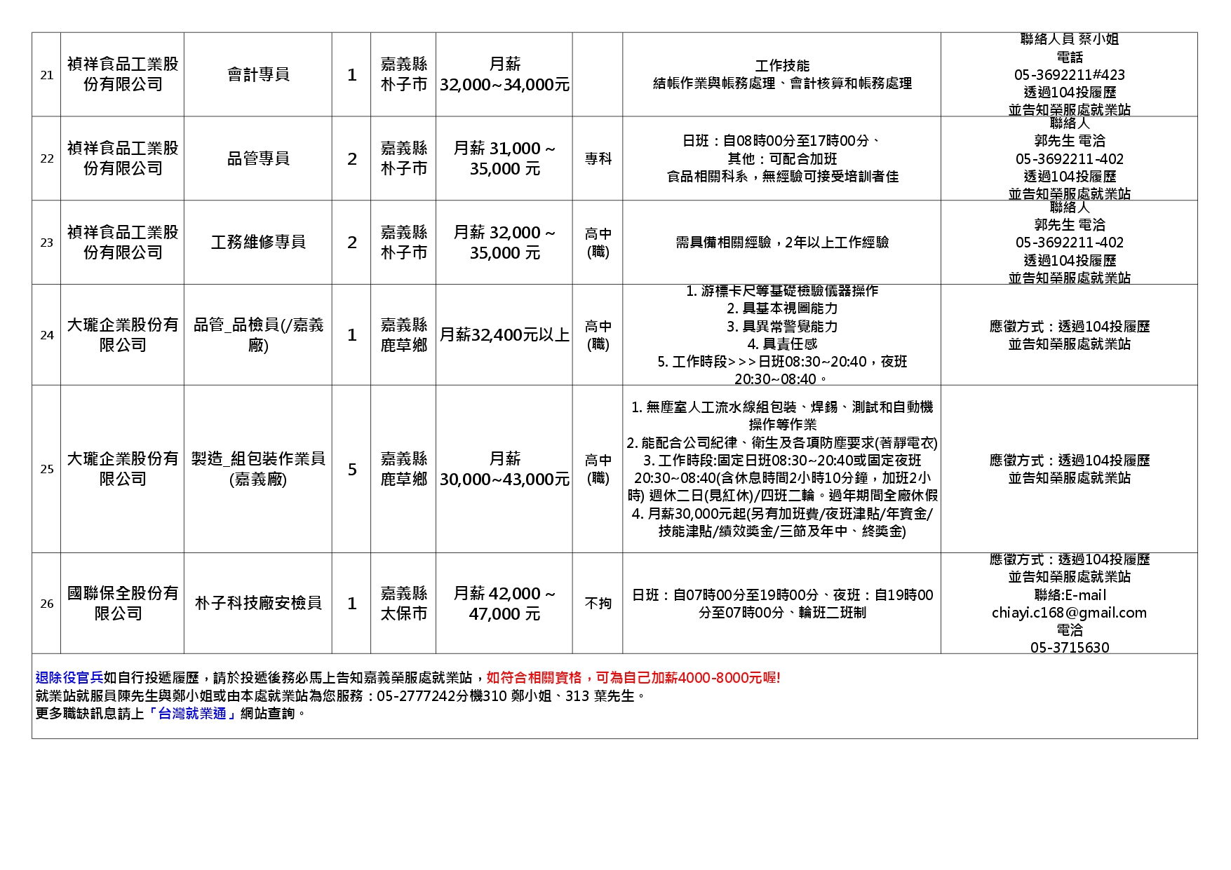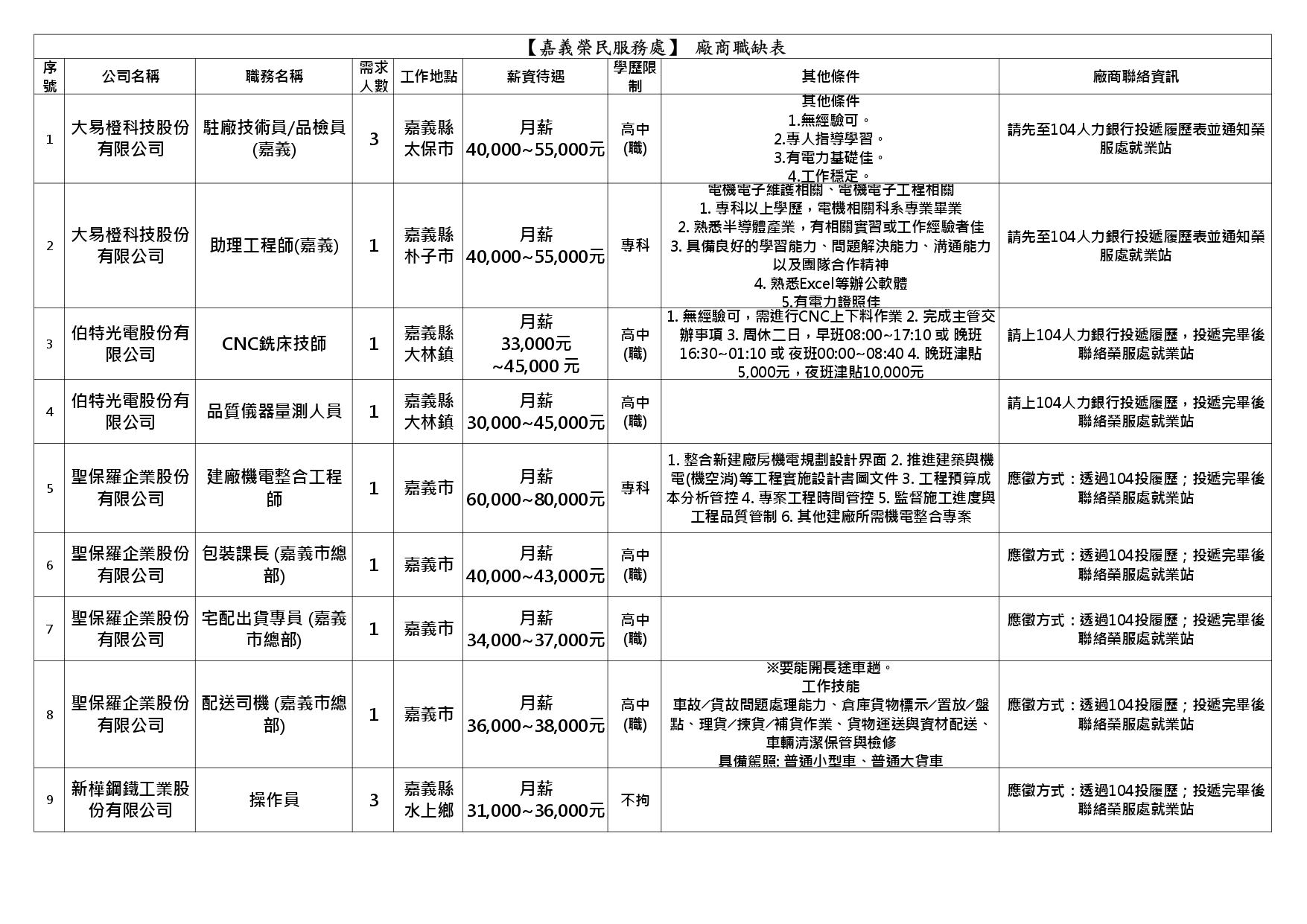 【嘉義榮服處】廠商職缺表(114.12.02)