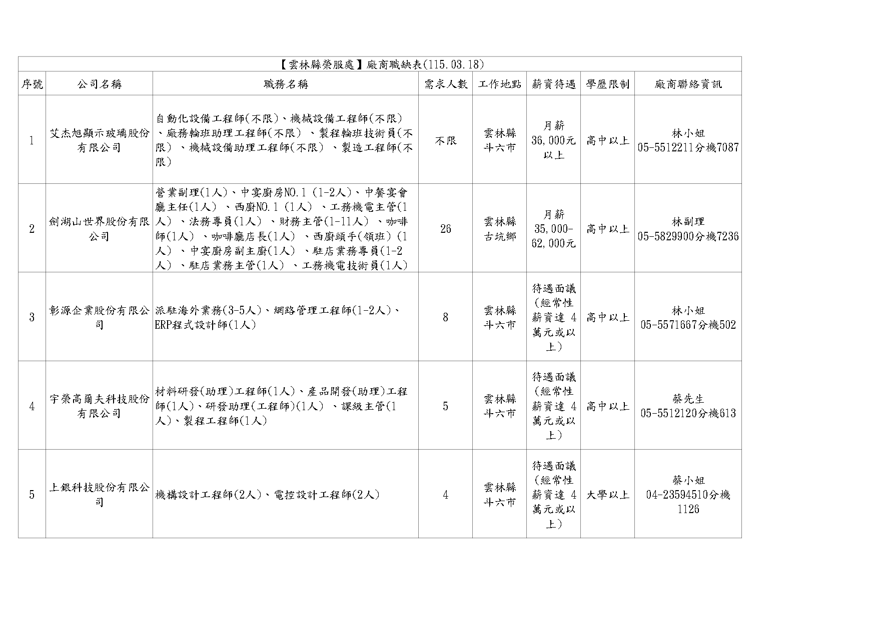 | 【雲林縣榮服處】廠商職缺表(115.03.18)+.pdf | 115-03-18 | 4 |
