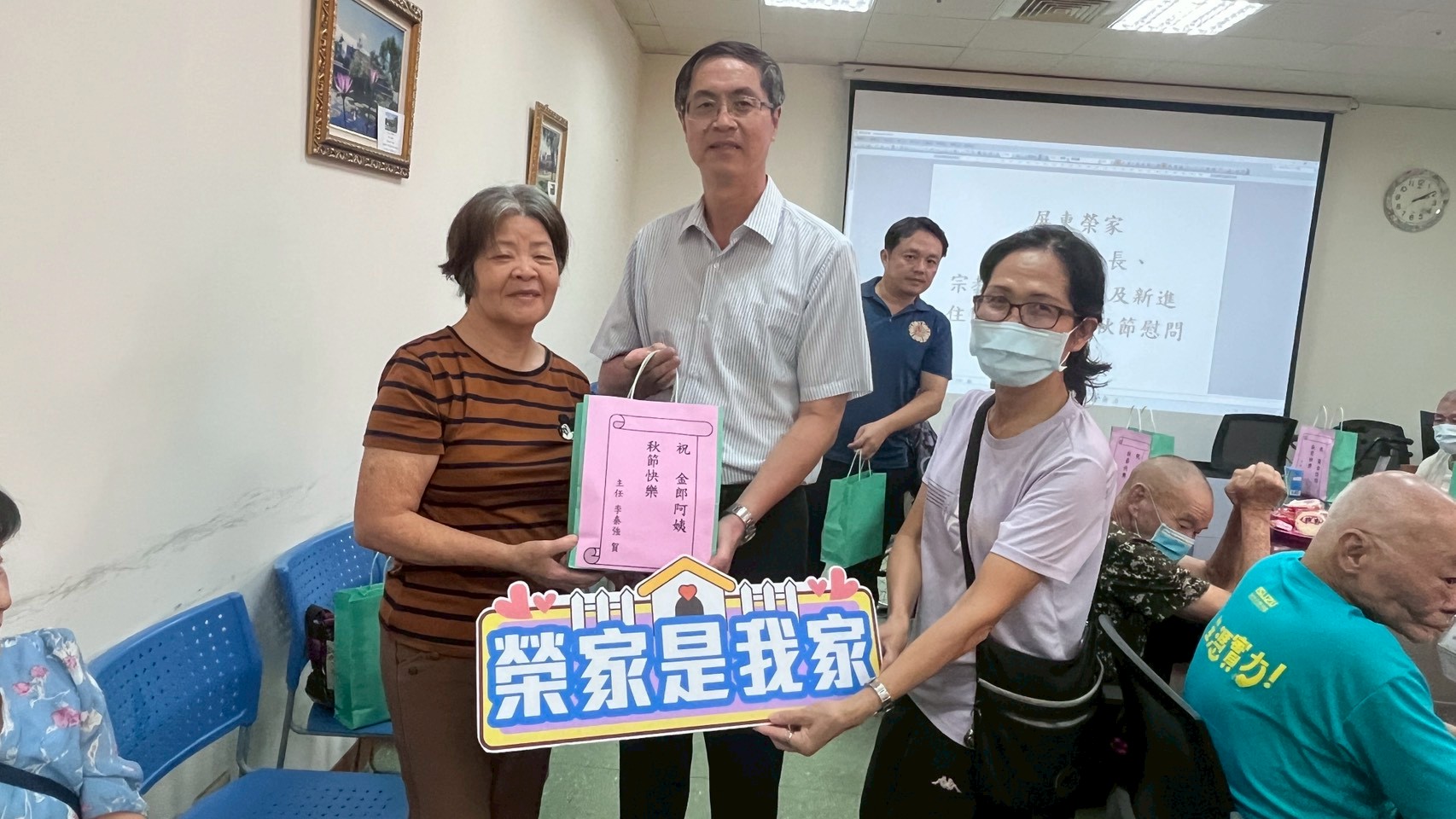 為感謝房戶長、宗教設施管理志工及新進住民輔導志工在家區日常生活中的用心付出,屏東榮家於秋節前特別舉辦慰問活動,並致贈中秋禮品,對這些志工長輩表達最深的敬意與感謝。這場溫馨的慰問行動,不僅讓志工長輩們感受到節慶的溫暖,也突顯房戶長、宗教設施管理志工及新進住民輔導人在榮家生活體系中的重要性。 屏東榮家長期致力於住民自主參與、互助共好,不僅讓住民有參與感,更提升整體的生活品質。透過房戶長等志工角色參與,讓堂長與工作人員能即時掌握住民動態,遇到緊急狀況也能迅速反應,對於促進彼此溝通、凝聚向心力有著不可或缺的關鍵作用。 隨中秋節將至,在這充滿感恩與圓滿的節日,讓志工長輩們感受到榮家的重視及支持,並持續為榮家住民服務。透過這樣溫暖的行動,將人與人之間的情感相互凝結,並讓「家」的概念更深植住民心中。