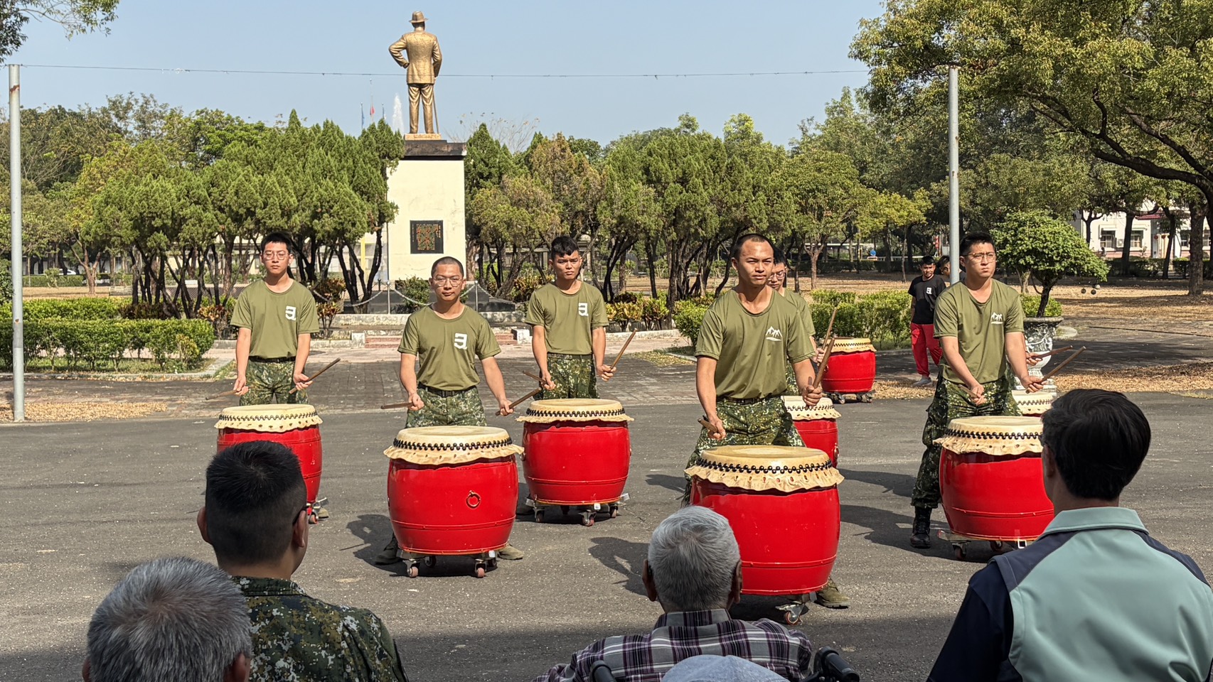 活動高潮隨著陸軍第三三三旅的戰鼓隊及醒獅團熱鬧登場,鑼鼓齊鳴、節奏鏗鏘,祥獅隨著鼓聲翻騰跳躍,象徵驅邪納福、步步高升。醒獅向住民長輩拜年獻瑞,逗趣可愛的動作引來陣陣笑聲與掌聲,寓意福氣臨門、吉星高照,為整場活動增添濃厚節慶色彩。