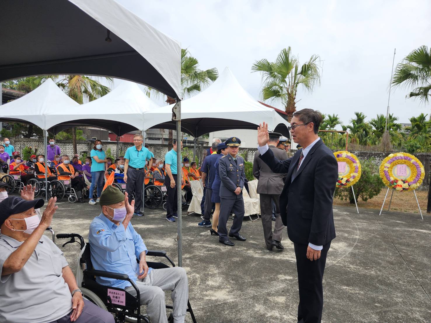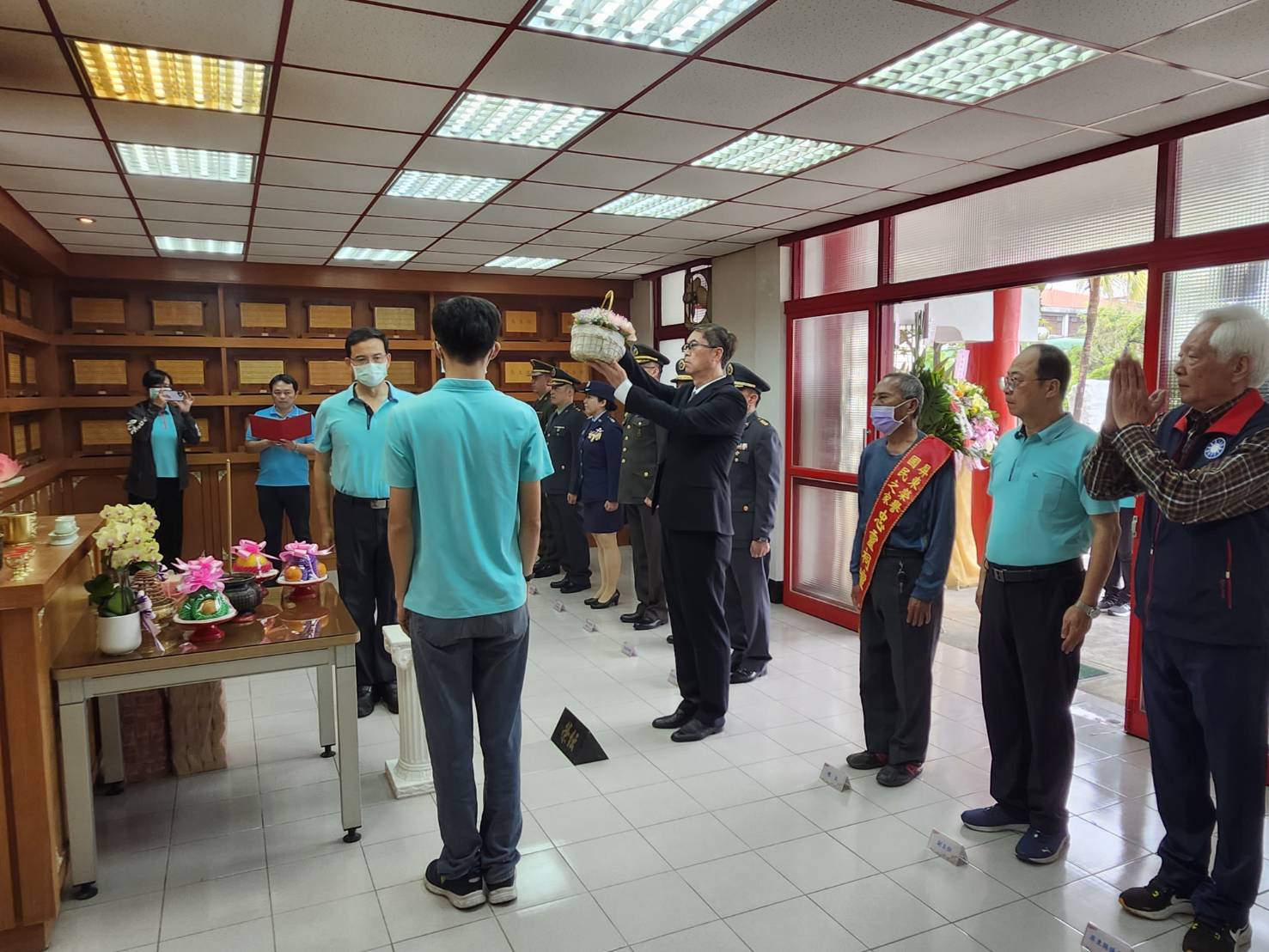 屏東榮譽國民之家為表達對榮民先賢的追思與敬意,緬懷其保國衛民豐功偉績與奉獻精神,於今(24)日上午十時在榮家忠靈祠舉行115年春祭典禮。 典禮由家主任親自主持,並邀請軍方代表、地方議員與村長陪祭,住民長輩及職員工等百餘人與祭。依禮完成上香、獻花、獻果、獻爵並恭讀祭文等儀式,最後以三鞠躬禮向榮民英靈靈位致上最高敬意,氣氛莊嚴隆重,肅穆感人。 屏東榮家主任李秦強表示,春祭典禮不僅緬懷榮民前輩為國犧牲奉獻的偉大貢獻,更是傳承與飲水思源的重要儀式。透過此次活動,期盼喚起更多人對榮民歷史的認識與尊重,同時讓在住長輩感受到社會的溫暖與陪伴。