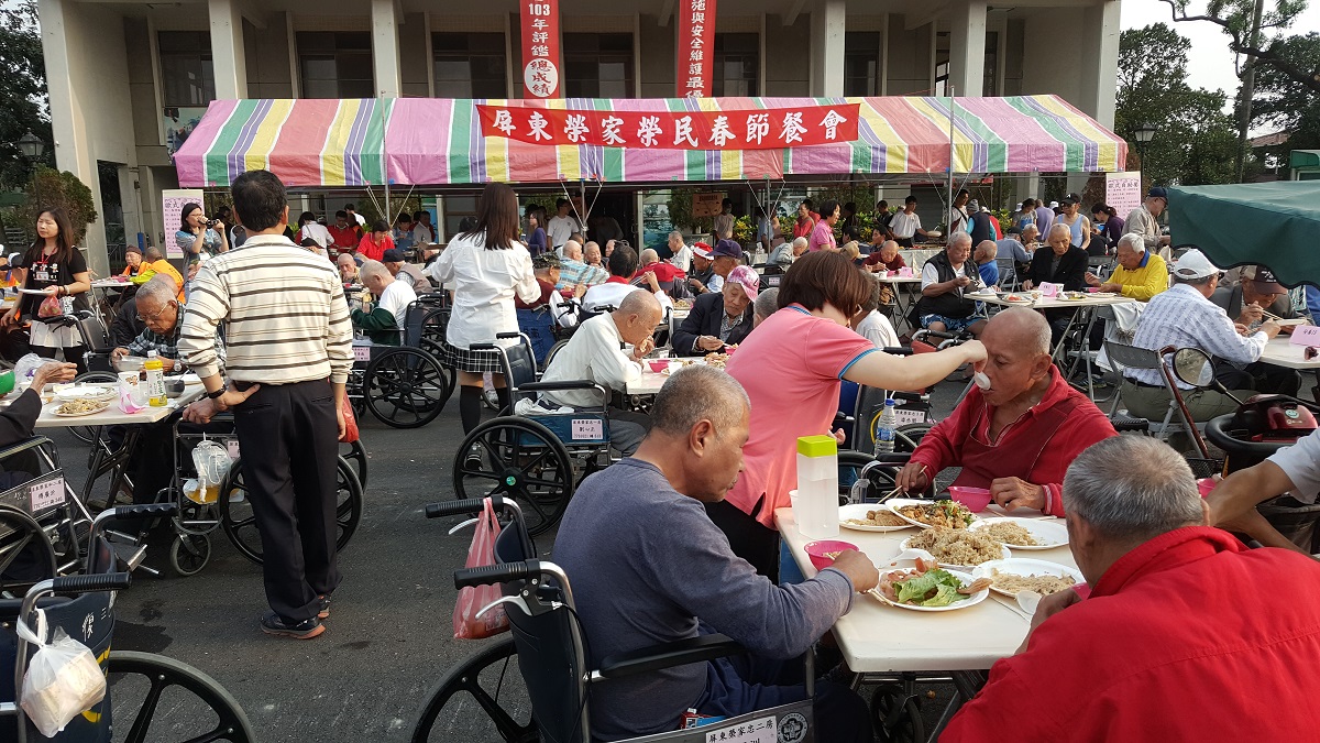 106年1月19日屏東榮家迎新春系列活動、榮民揮毫贈春聯暨「榮民歳末歐式自助餐及一月份慶生會」熱鬧溫馨