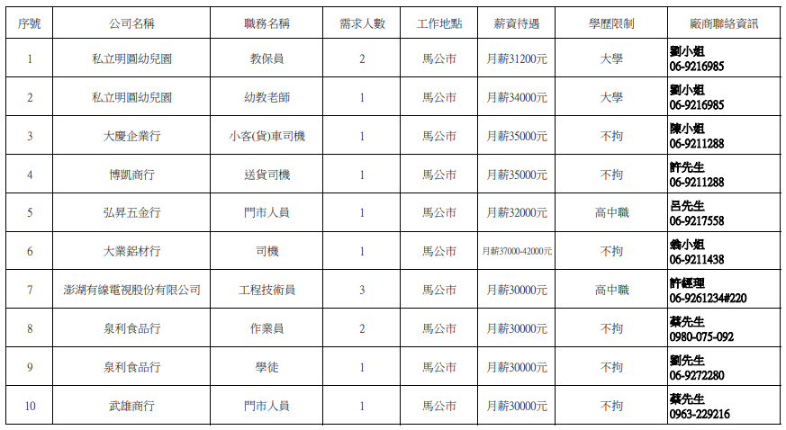 發布日期:114-10-13 資料來源:澎湖縣榮民服務處 【澎湖縣榮服處】廠商職缺表(114.10.13) 附件下載 檔案名稱 更新日期 下載次數 【澎湖縣榮服處】廠商職缺表(114.10.13).pdf 114-10-17 6