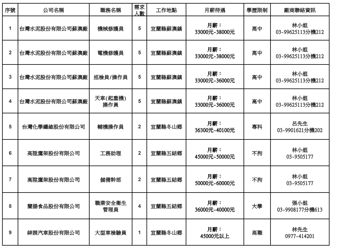 發布日期:114-10-23 資料來源:宜蘭縣榮民服務處 【宜蘭縣榮服處】廠商職缺表(114.10.27) 附件下載 檔案名稱 更新日期 下載次數 【宜蘭縣榮服處】廠商職缺表(114.10.27).pdf 114-10-23 3