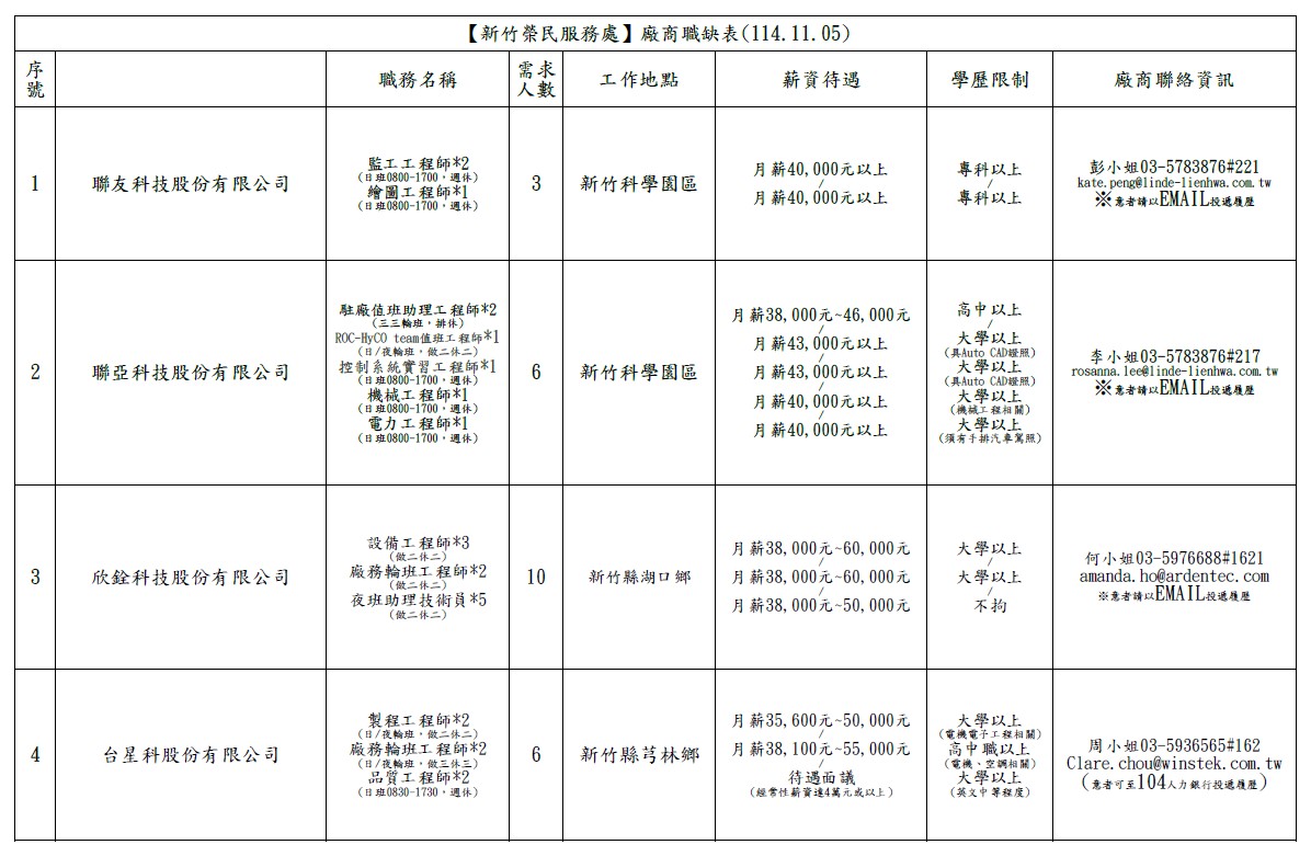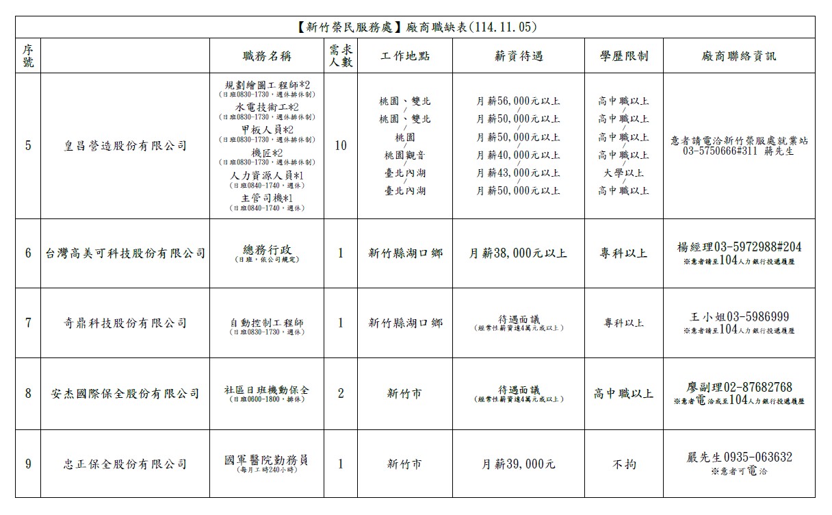 發布日期:114-11-05 資料來源:新竹榮民服務處 新竹榮服處廠商職缺表(114.11.05)【新竹榮服處】廠商職缺表(114.11.05) 相關照片 新竹榮服處廠商職缺表(114.11.05)-1 附件下載 檔案名稱 更新日期 下載次數 新竹榮服處廠商職缺表(114.11.05)--1.pdf 114-11-05 0