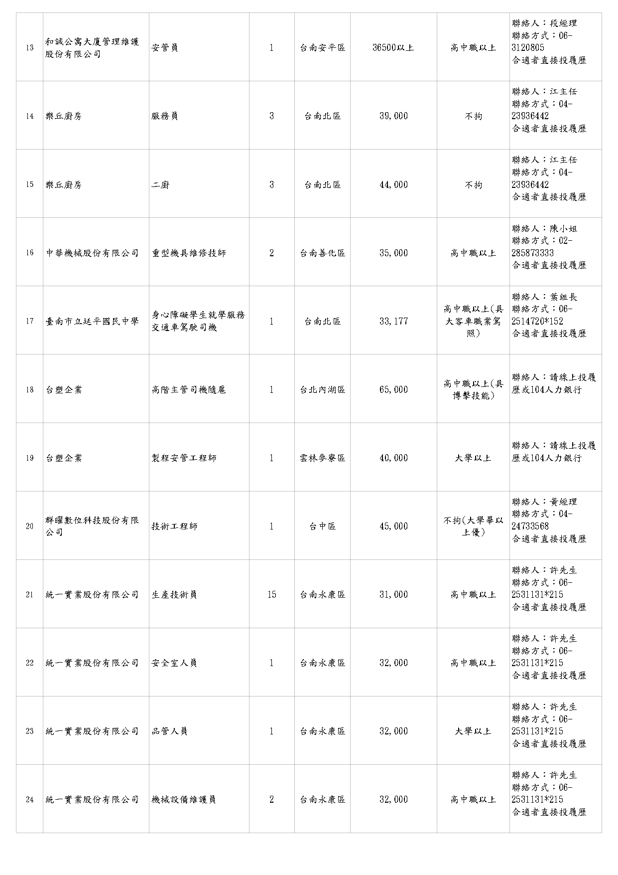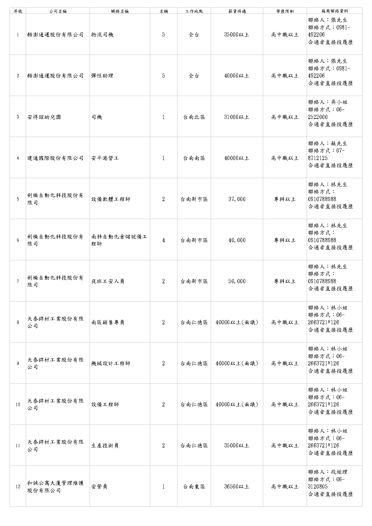 發布日期:114-11-13 資料來源:臺南市榮民服務處 【臺南市榮服處】廠商職缺表(114.11.7)輔導會_page-0001 相關照片 【臺南市榮服處】廠商職缺表(114.11.7)輔導會_page-0002 【臺南市榮服處】廠商職缺表(114.11.7)輔導會_page-0003 【臺南市榮服處】廠商職缺表(114.11.7)輔導會_page-0004 【臺南市榮服處】廠商職缺表(114.11.7)輔導會_page-0005 【臺南市榮服處】廠商職缺表(114.11.7)輔導會_page-0006 【臺南市榮服處】廠商職缺表(114.11.7)輔導會_page-0007 【臺南市榮服處】廠商職缺表(114.11.7)輔導會_page-0008