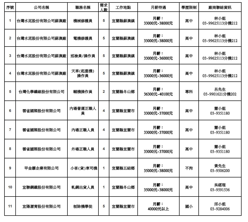 發布日期:114-11-14 資料來源:宜蘭縣榮民服務處 【宜蘭縣榮服處】廠商職缺表(114.11.17) 附件下載 檔案名稱 更新日期 下載次數 【宜蘭縣榮服處】廠商職缺表(114.11.17).pdf 114-11-14 12