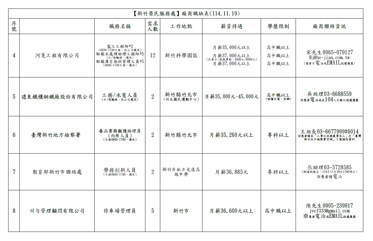 發布日期:114-11-19 資料來源:新竹榮民服務處 新竹榮服處廠商職缺表(114.11.19)【新竹榮服處】廠商職缺表(114.11.19) 相關照片 新竹榮服處廠商職缺表(114.11.19)-1 附件下載 檔案名稱 更新日期 下載次數 新竹榮服處廠商職缺表(114.11.19)--1.pdf 114-11-19 2