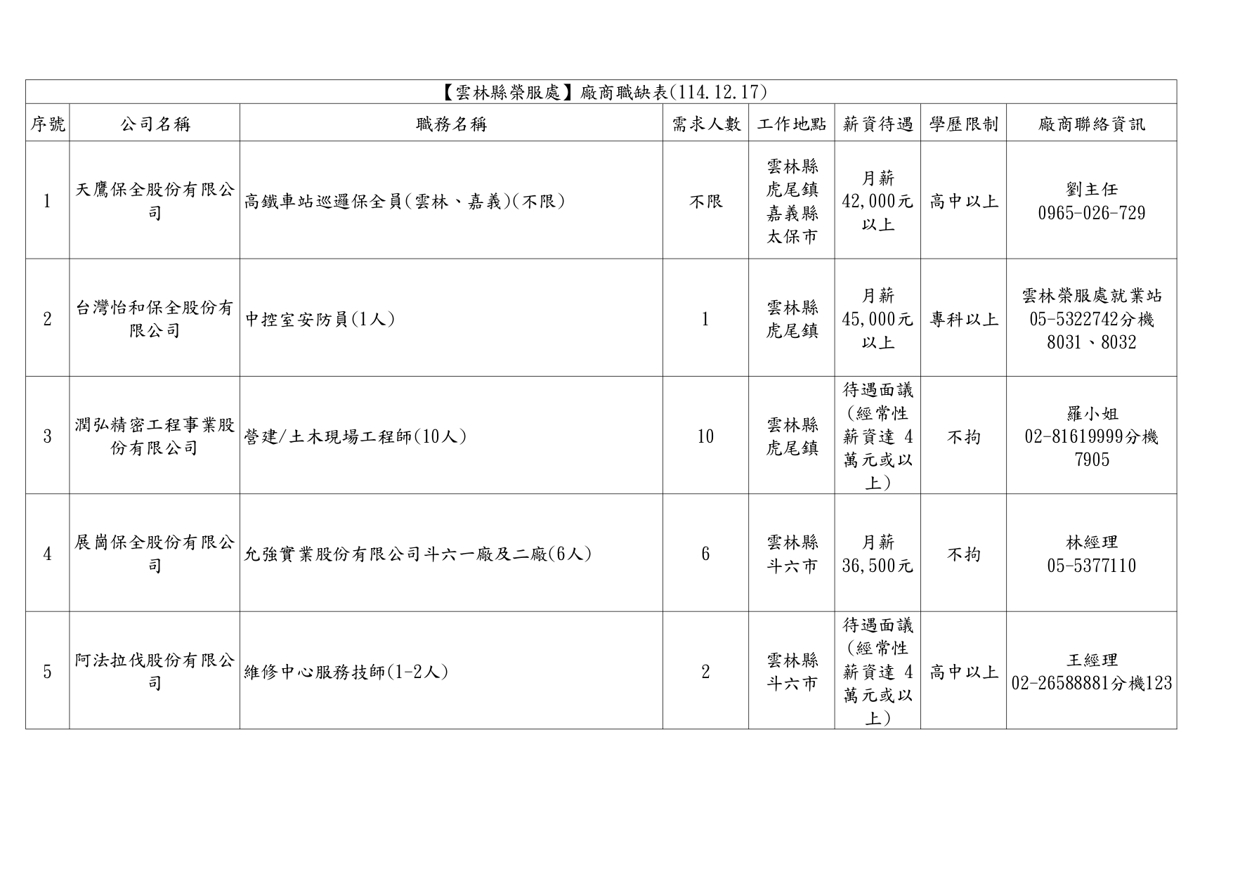 | 【雲林縣榮服處】廠商職缺表(114.12.17)+.pdf | 114-12-18 | 6 |