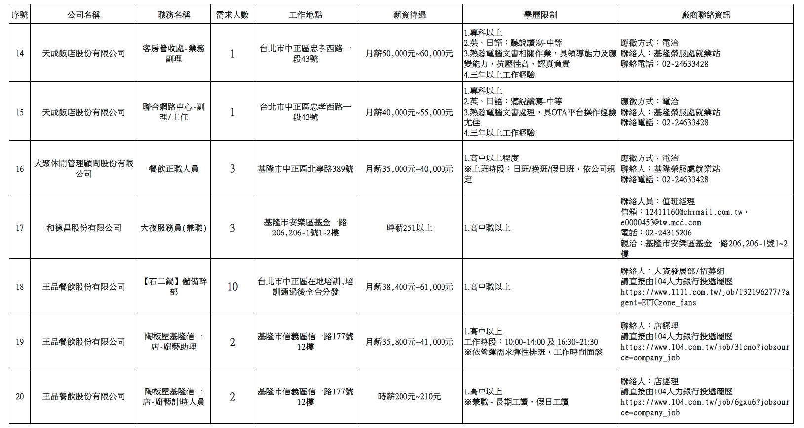 發布日期:115-01-06 資料來源:基隆市榮民服務處 【基隆市榮服處】廠商職缺表(115.01.06)-1 相關照片 【基隆市榮服處】廠商職缺表(115.01.06)-2 【基隆市榮服處】廠商職缺表(115.01.06)-3 【基隆市榮服處】廠商職缺表(115.01.06)-4 【基隆市榮服處】廠商職缺表(115.01.06)-5 【基隆市榮服處】廠商職缺表(115.01.06)-6 【基隆市榮服處】廠商職缺表(115.01.06)-7 【基隆市榮服處】廠商職缺表(115.01.06)-8 附件下載 檔案名稱 更新日期 下載次數 【基隆市榮服處】廠商職缺表(115.01.06).pdf 115-01-06 16