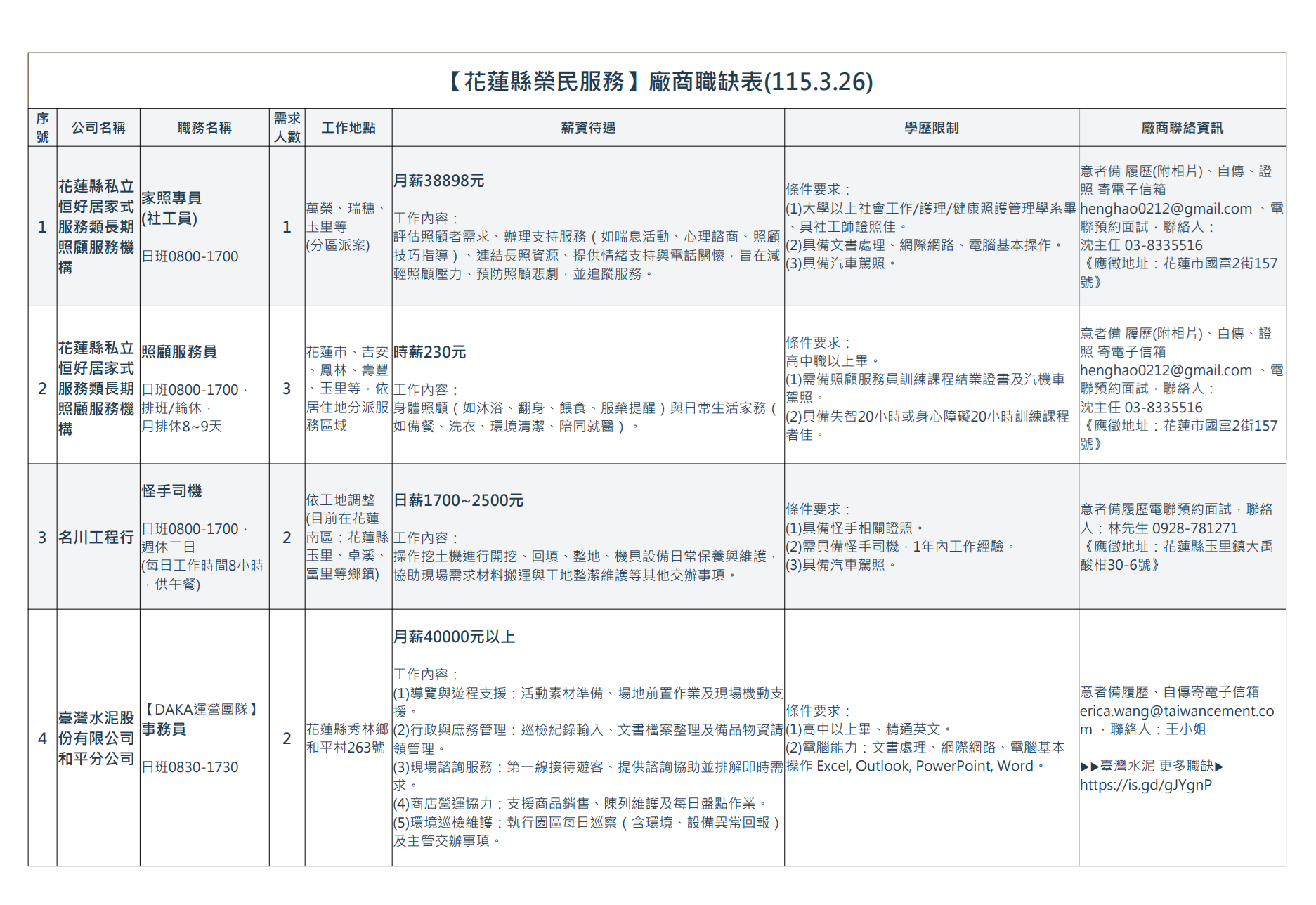 | 【花蓮縣榮民服務處】廠商職缺表(115.3.26).pdf | 115-03-26 | 7 |