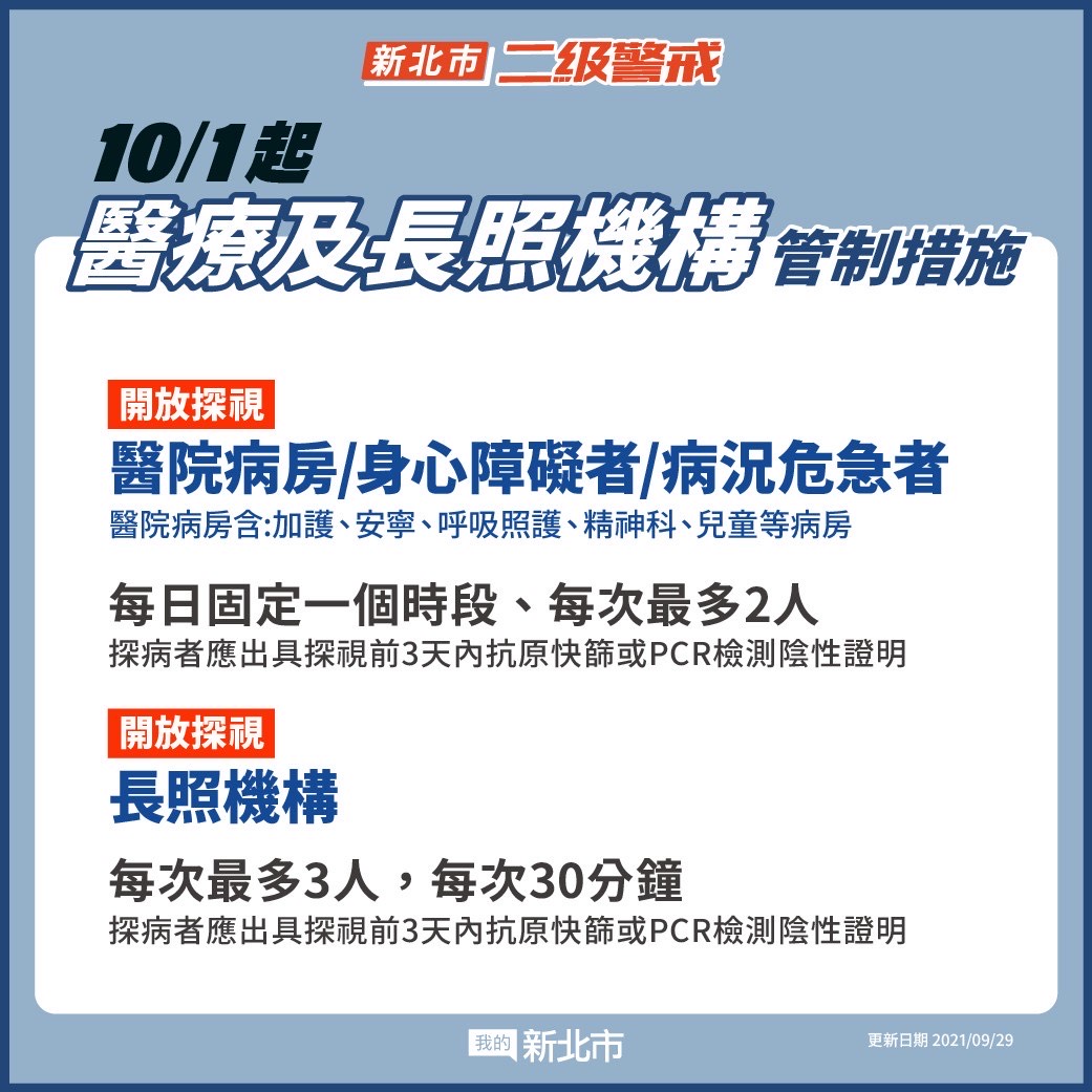 依據9/19中央疫情指揮中心及9/29新北市最新防疫規定,