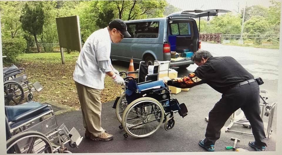 台北榮總身障重建中心維修技師變身為輔具醫師,至本家維修輪椅及洗澡椅。
