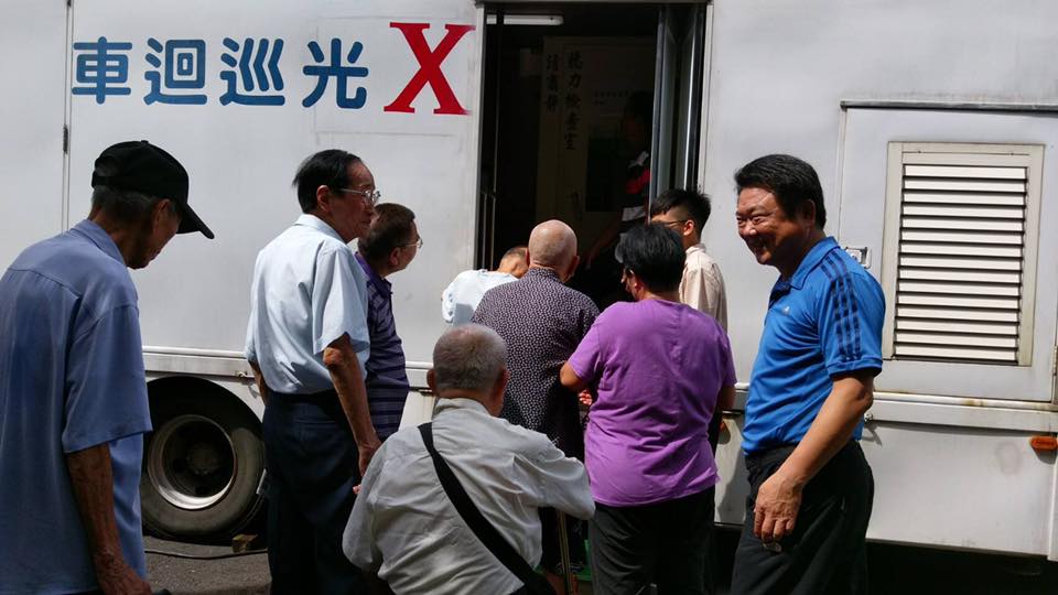 107年6月6-8日保健組辦理全家區住民及員工胸部X光檢查 為照顧年邁長者 特與桃園分院合作採專用臥式、站式X光巡迴專車為住民服務 家主任也帶領大家湧躍參加 期使早期發現早期治療 達預防保健之成效