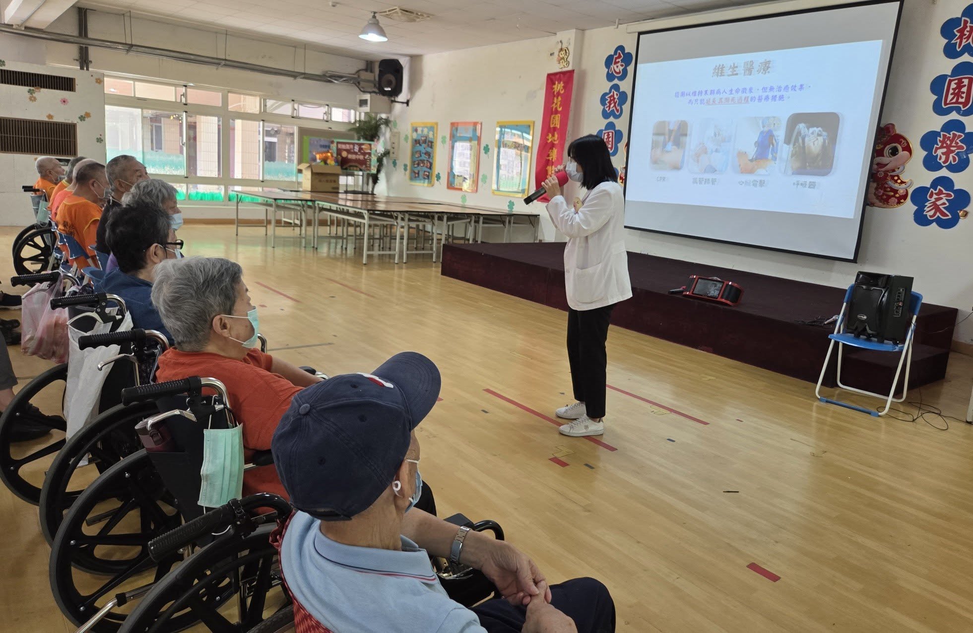 預立醫療諮商,有助住民了解並表達對生命末期醫療的選擇,實現有尊嚴的善終 桃園榮家特於日前與臺北榮總桃園分院合作 邀請安寧個管師劉佳雯前來進行「預立醫療諮商衛教宣導」 活動中住民熊大哥表示,透過今天講師詳細說明之後,對於預立醫療諮商的意義有了清楚的理解與認同 希望自己在疾病末期時順其自然的走,避免侵入性治療的折磨,想利用預立醫療諮商門診,與家人討論相關事宜,在家人的陪伴見證與共識下 完成自己的預立醫療決定
