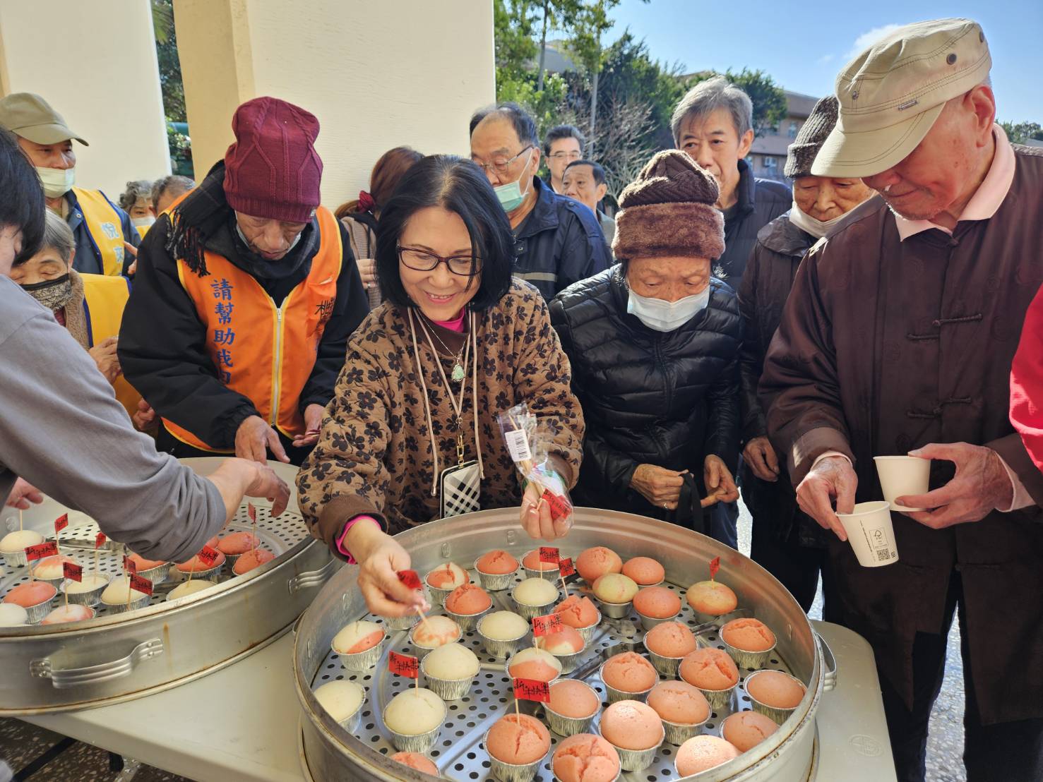 春節將近,年味漸濃,桃園榮家於今(23)日在家區國旗穹頂下舉辦「馬年發發發-開運發糕DIY」活動 邀請伯伯阿姨們一起動手做發糕 迎接新年好兆頭 活動現場,長輩們魚貫而來,從材料秤重、倒粉、加沙拉油、加冷水、拌勻,一步步完成製作流程。奶奶們熱心分享過往在家做發糕的小祕訣 伯伯們也樂於嘗試親手製作的樂趣 現場架設炊具開爐蒸煮,陣陣香氣瀰漫,吸引更多住民靠攏圍觀,大家一邊話家常、一邊期待成品出爐,笑聲此起彼落。當熱騰騰的發糕完成後,長輩們開心品嚐 有人分享「鬆軟香甜、真的發了!」也有人笑說「這就是過年的味道 」現場洋溢著家的溫馨與節慶的喜悅