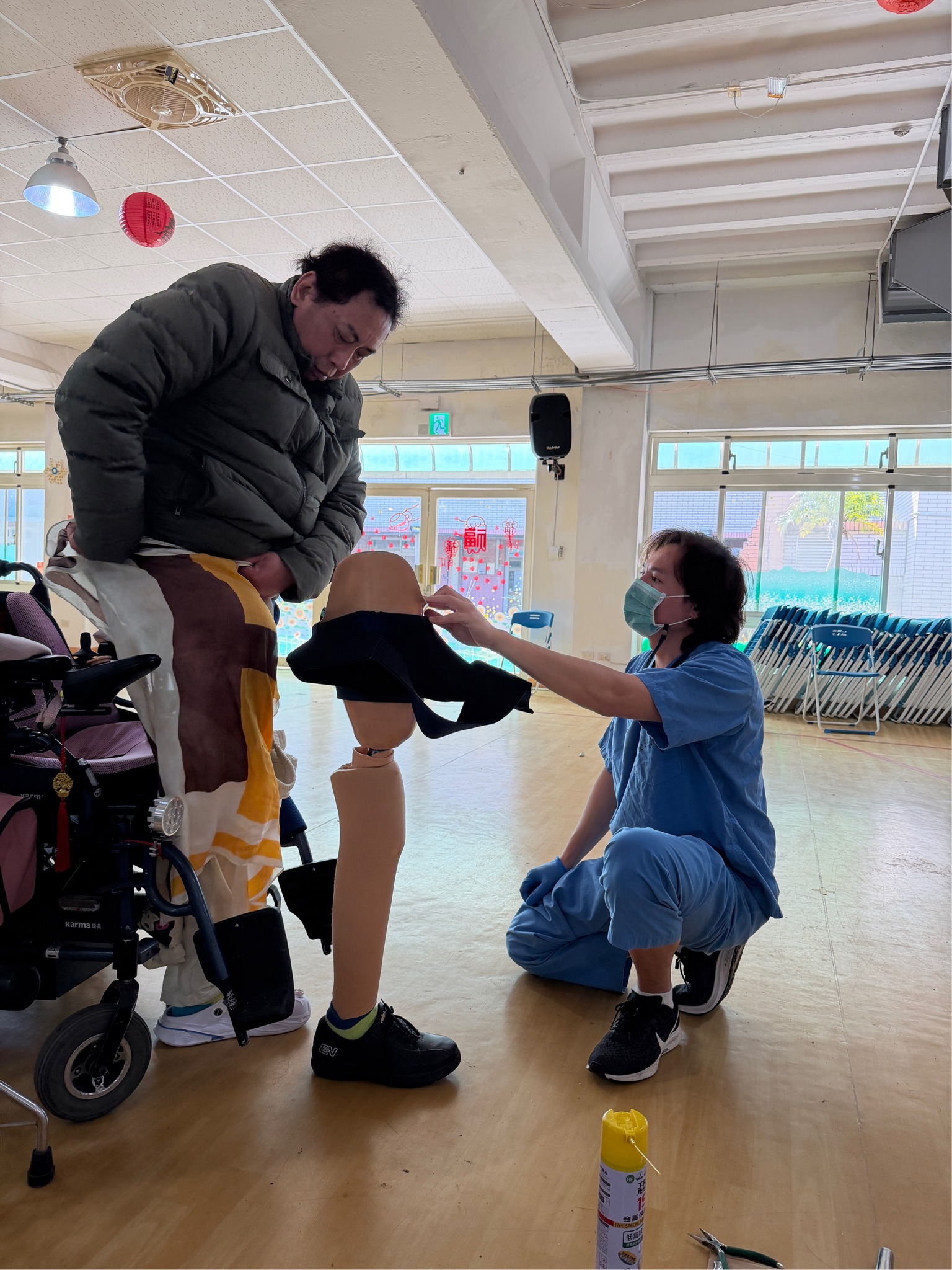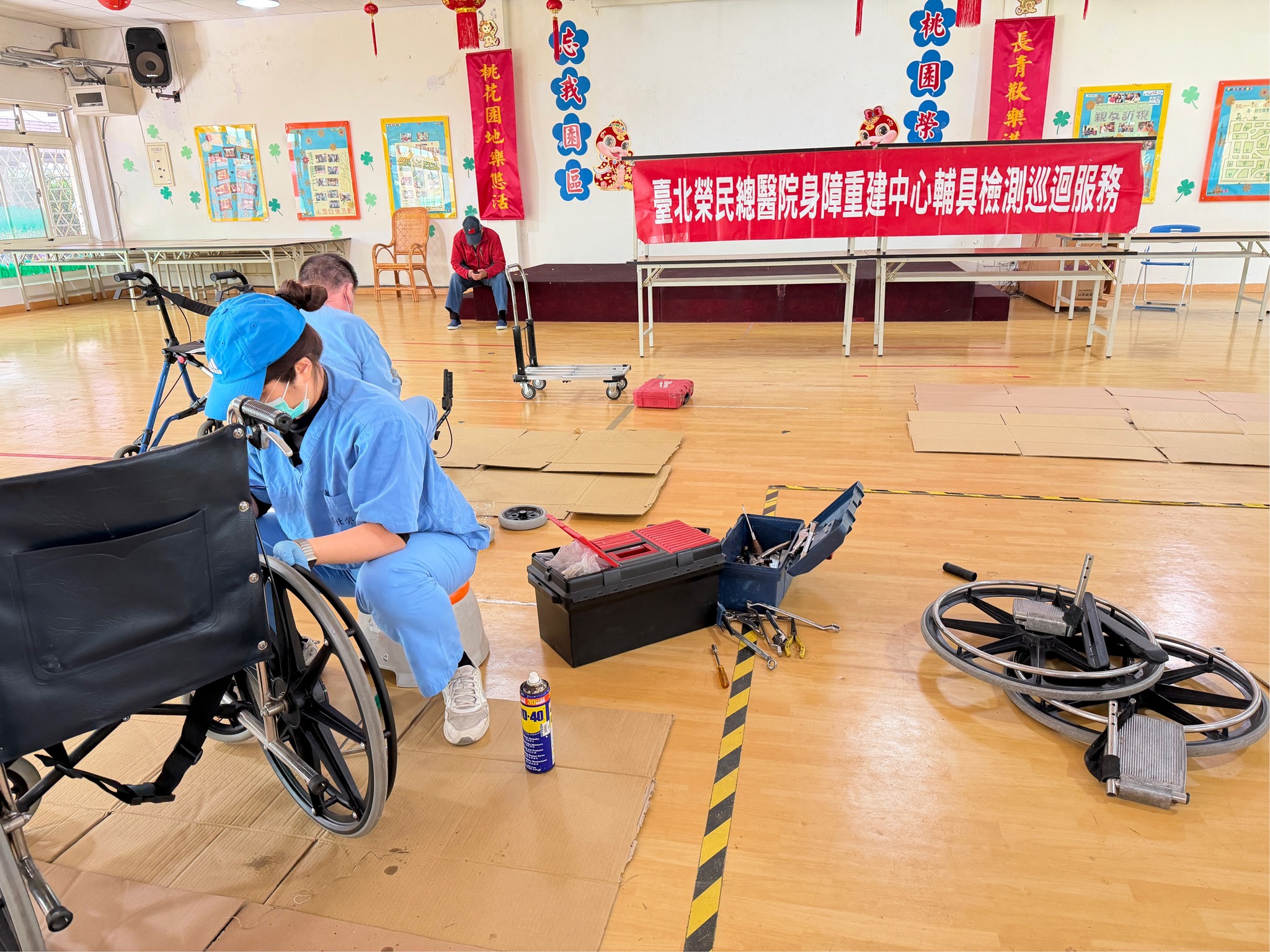 2/3桃園榮家攜手北榮身障中心辦理年度輔具巡迴維修與保養服務 便捷住民長者完成輔具檢修,減少奔波不便 巡迴服務由專業技術人員進駐現場,針對輪椅 洗澡便盆椅等常用輔具進行全面檢測、零件更換與細部調整,確保輔具安全狀態 並依住民個別狀況說明正確使用方式與日常保養 提升輔具使用安全性,預防意外發生。長輩表示,感謝台北榮總身障重建中心不需另行前往醫院,省時又安心