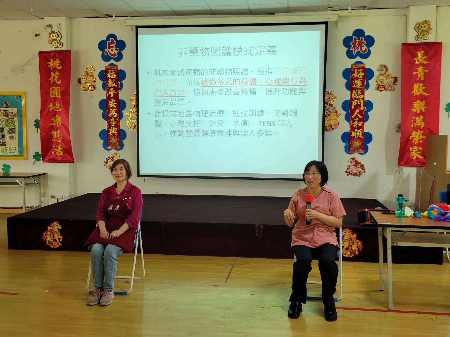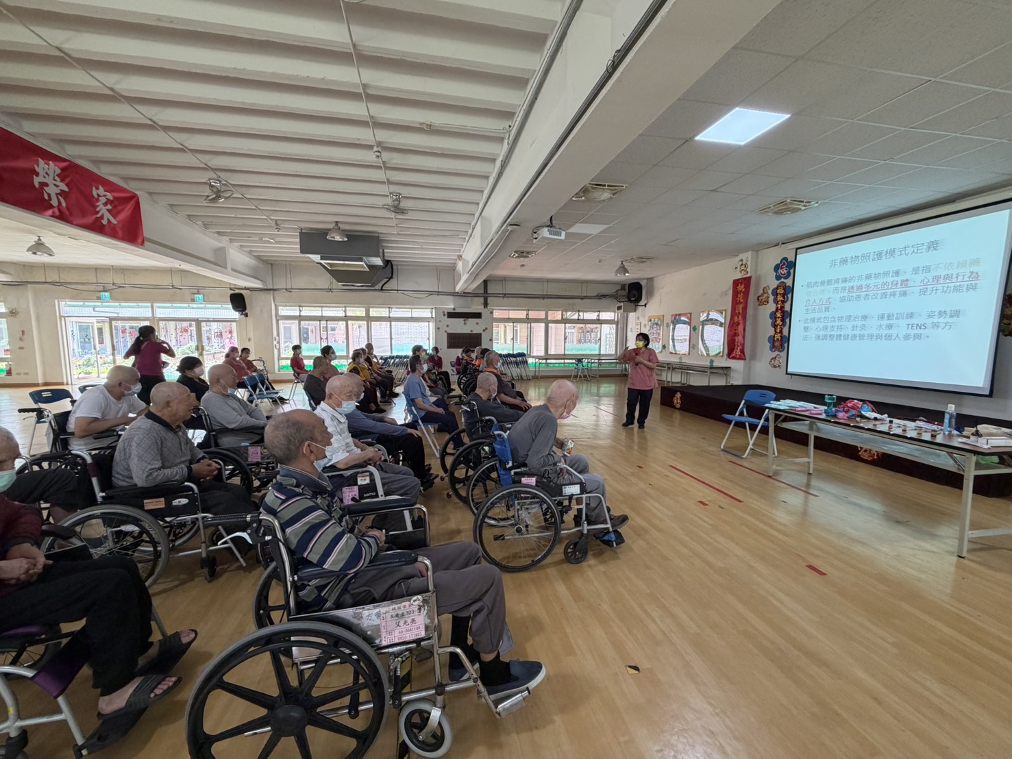 銀髮族身體疼痛中肌肉骨骼疼痛居首位,桃園榮譽國民之家於4月份舉辦「預防肌肉骨骼疼痛非藥物照護」團體衛教課程,從正確姿勢、肌力訓練與日常保健等面向進行分享。 在課程中,護理師以簡單易懂的方式,示範如何透過按摩、伸展運動與肌肉放鬆,來預防及緩解肌肉僵硬。長輩們熱烈分享自身疼痛經驗,在護理師引導下,練習正確坐姿、蹲姿和站姿。不少長輩開心地表示:「原來調整一下姿勢,身體就感覺輕鬆許多了」。 雙向交流,氣氛輕鬆活潑,提醒長輩在藥物止痛外,預防疼痛最好的辦法就是「要活就要動」。