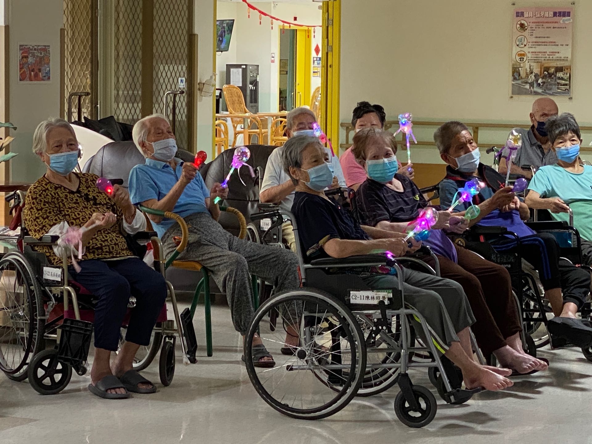 雲鄉陶笛社社員林美惠、李宜娥、蔡素金及其友人郭晏如女士等人蒞家表演陶笛及歌唱舞蹈,現場長輩聽得十分入迷,不禁也跟著哼唱國台語經典歌曲及流行歌,如愛的禮物、白牡丹、西北雨、月夜愁、天下的媽媽都是一樣的、陪我看日出...接續好幾首的歌曲,同時也準備手搖鈴及燈光手持棒等道具,讓長輩也能跟著一起打節拍、揮動手部肢體,刺激長輩的五官感受,一同渡過愉快的下午時光。