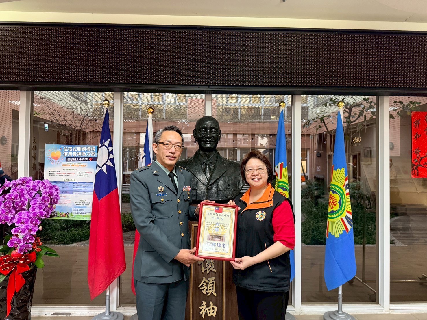 本家於日前舉行「雲林縣後備指揮部『對日抗戰80週年紀念徽章』頒贈典禮」。為表彰榮民長輩早年保家衛國的犧牲奉獻,雲林縣後備指揮部指揮官陳維忠上校親臨現場,逐一為曾經參與對日抗戰的榮民長輩頒贈紀念徽章,場面莊嚴隆重。 適逢對日抗戰80週年,這場「榮光傳承」儀式具有特殊的歷史意義。受贈的榮民長輩們雖年事已高,但在接受徽章的那一刻,眼中仍流露出軍人的堅毅與榮耀。榮民前輩戎馬半生,為國家安定奠定基石,頒贈這枚徽章不僅是榮譽的象徵,更代表了國家對老兵們最高的敬意。 張主任強調,妥善照顧榮民是榮家的核心職責,透過今日的表揚活動,除讓長輩重溫軍旅榮光,也藉此讓後輩銘記歷史。此次頒贈典禮讓現場的榮民長輩們,深切感受到國家與社會的重視,度過一個備受尊崇與溫馨的午後時光。