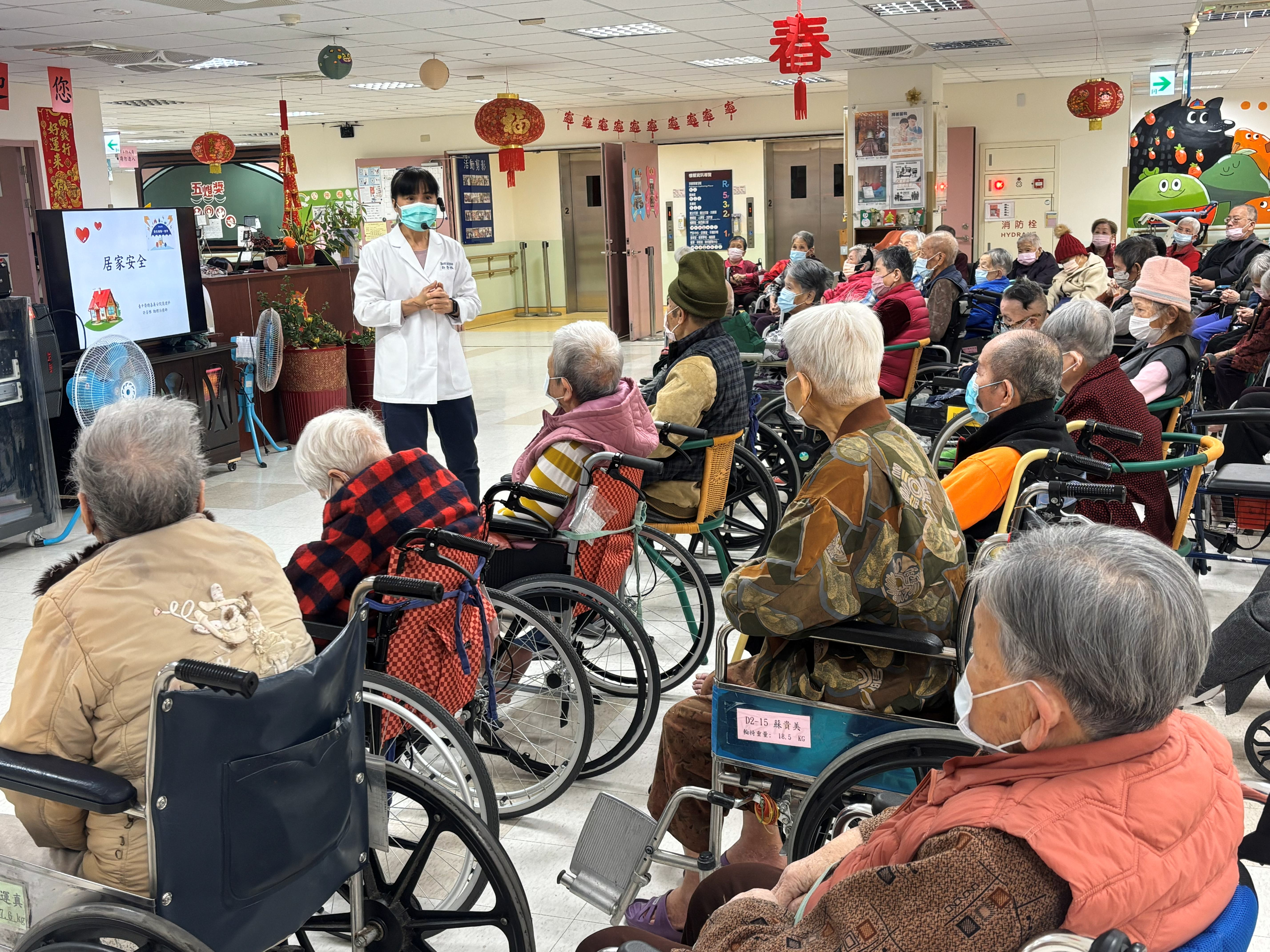 本次延緩失能課程以「居家安全」為主題,邀請嘉義分院許姿雅物理治療師至忠孝堂進行宣導,向住民講解日常生活中常見的安全風險與預防方式。課程內容貼近生活,協助住民建立正確的安全觀念,並搭配體適能活動,引導住民進行適度運動,以維持身體功能,進一步提升生活安全性與活動能力。