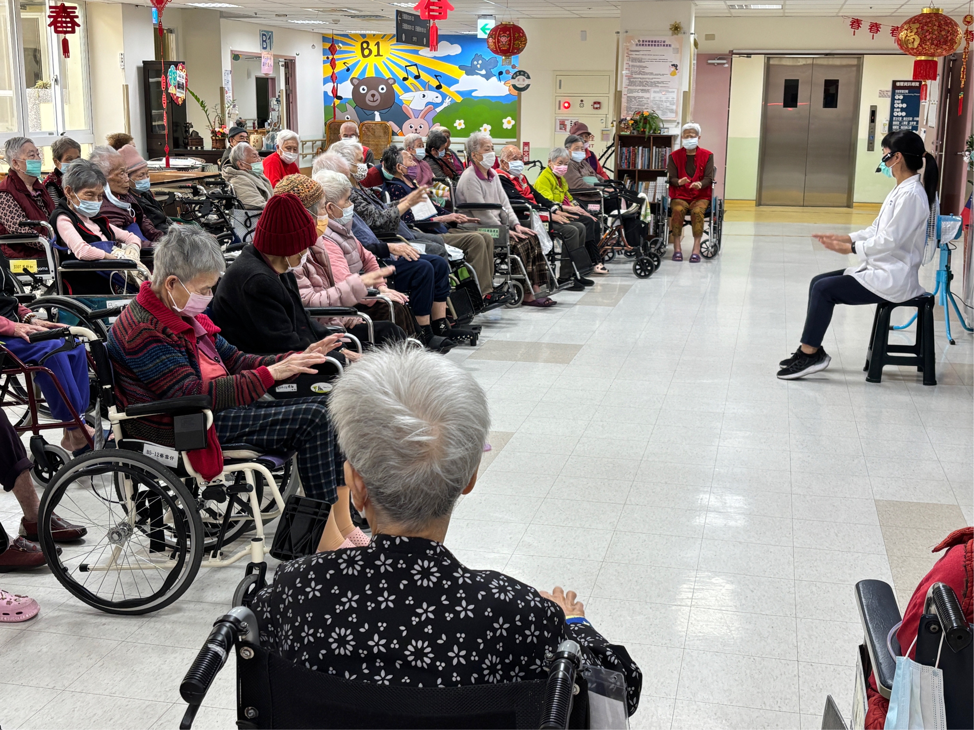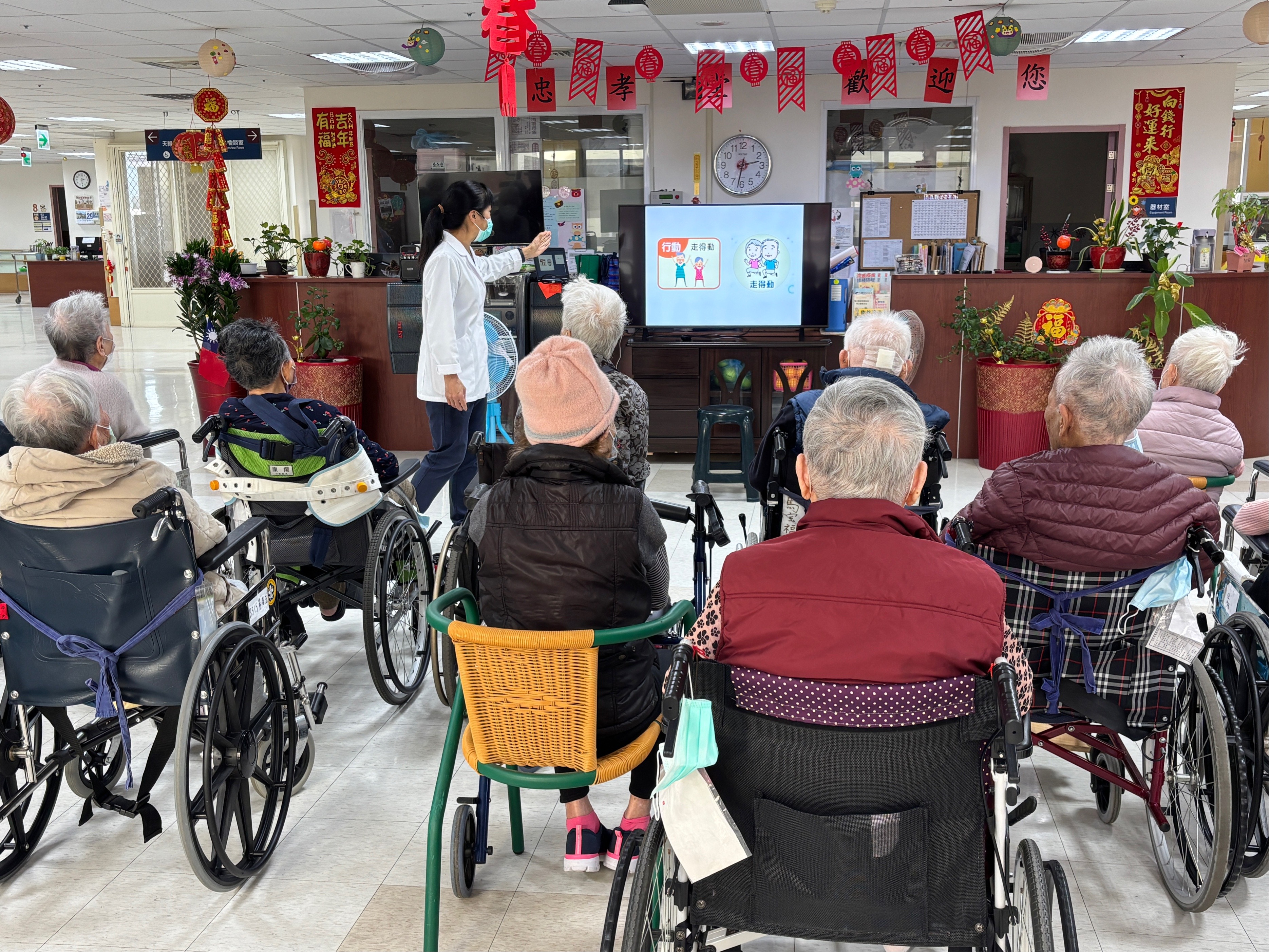 本次延緩失能課程以「提升行動能力」為主題,邀請嘉義分院許姿雅物理治療師蒞臨本家,帶領住民進行活動。課程中說明何謂行動能力,以及能行動、走得動對長者生活品質的重要性,並指導如何透過適當運動來增加行動能力。最後分享「長者保持健康9項功」,協助住民延緩失能,促進身體健康。 1.輕鬆步行:保持能與人對話速度的步行,微費力即可。