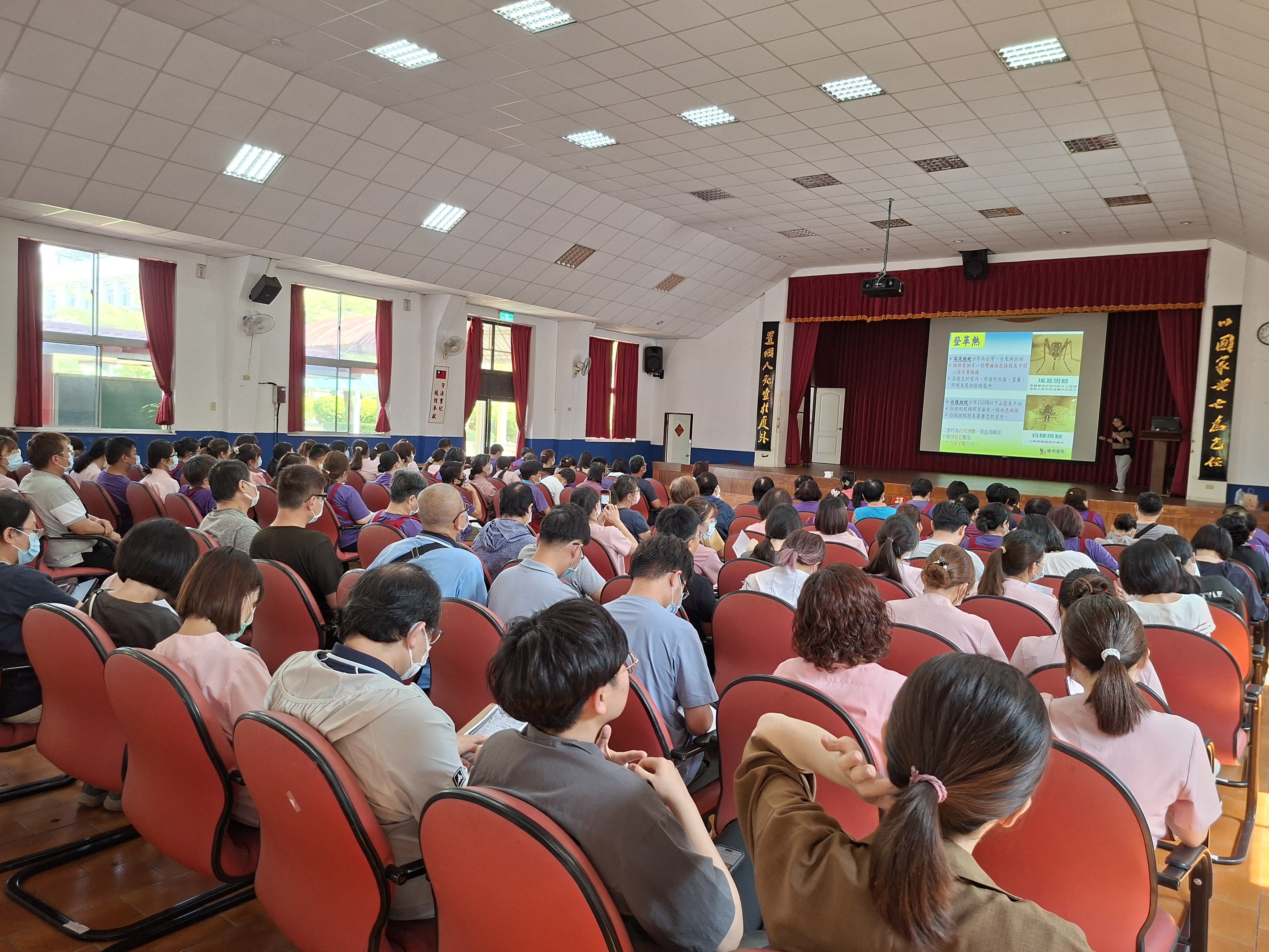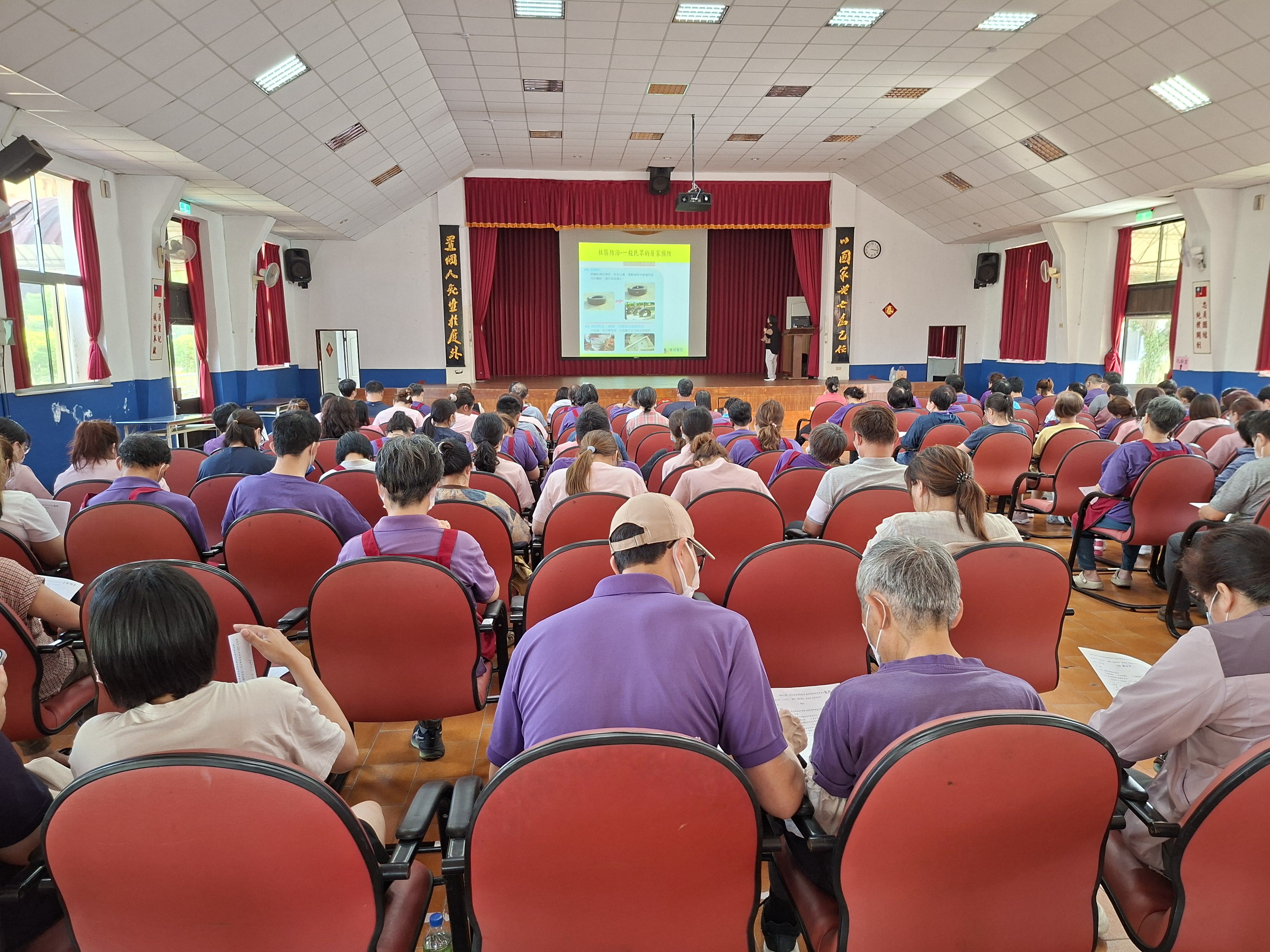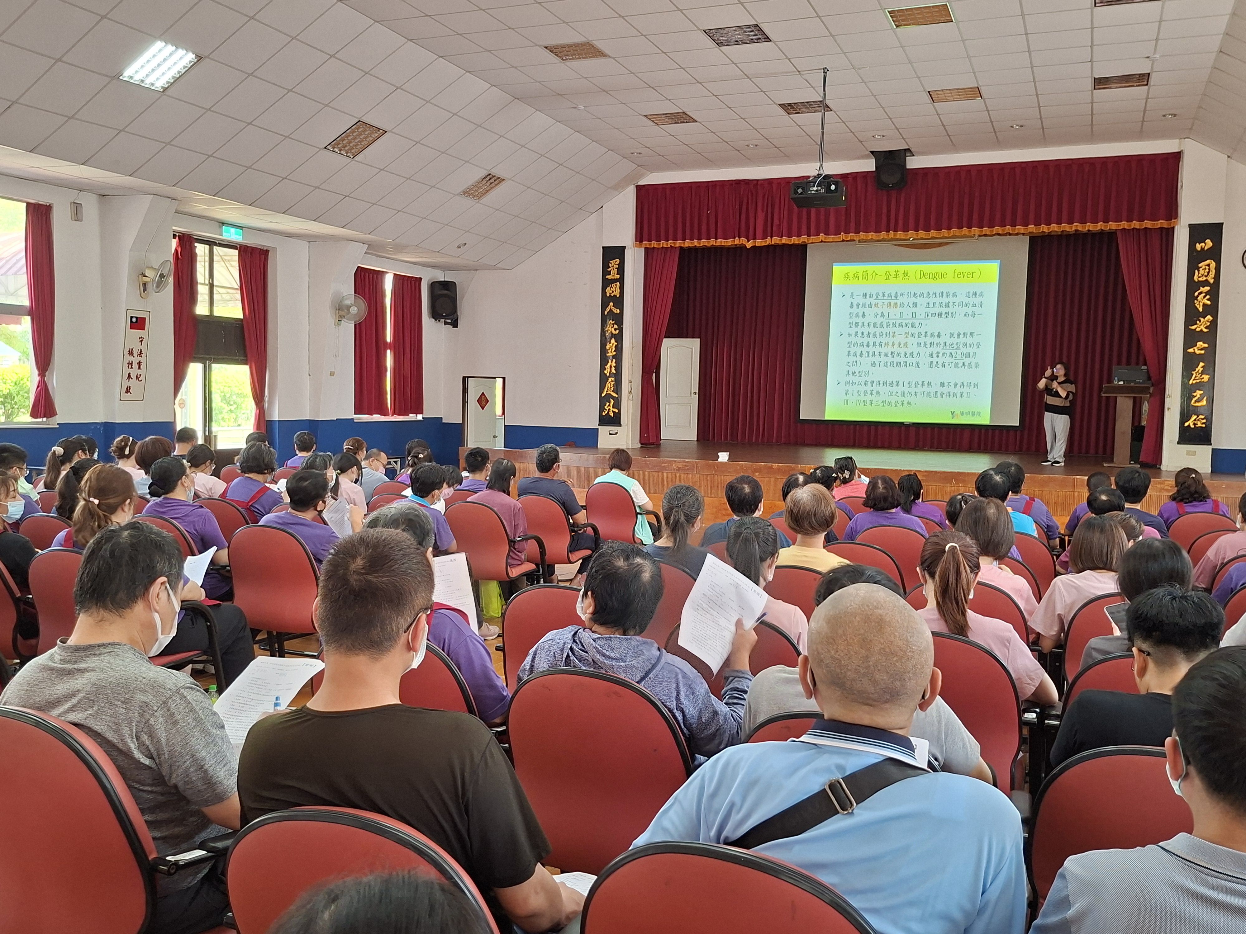天氣漸熱、雨季將近,病媒蚊也開始蠢蠢欲動,本家為守護長輩健康,特別辦理登革熱防治教育訓練,強化同仁防疫觀念與實務能力。 本次特別邀請陽明醫院感染管制師蔡衣玲來分享,深入淺出說明登革熱症狀與傳播方式,並強調「巡、倒、清、刷」四大關鍵,從盆栽底盤、排水溝到各種積水容器,全面清除孳生源。同時也提醒同仁,若出現發燒、頭痛、肌肉痠痛等症狀,要及早警覺、即時通報,守住防疫第一線! 本家作為群體生活場域,長輩健康防護為首要任務,透過教育訓練深化正確防疫觀念,並落實於日常照護與環境管理中,秉持「預防勝於治療」原則,持續打造安全、舒適、無疫病風險之優質頤養環境。