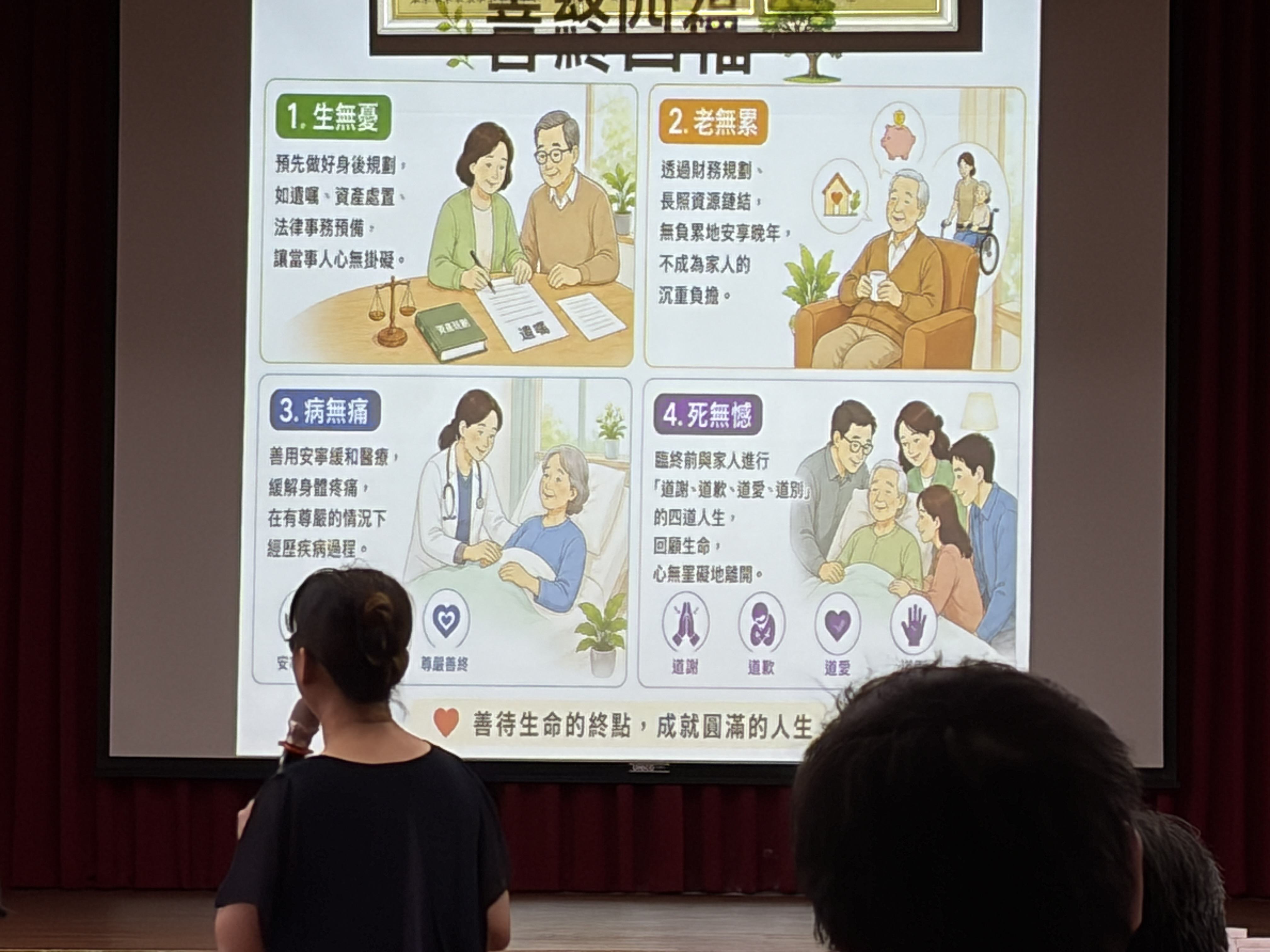 台中榮總嘉義分院蘇秋敏督導今日來家與第一線工作人員進行「善終照護概念」分享與交流,期望透過專業經驗的傳遞,提升長照場域對末期照護的理解與實務能力,讓住民在生命最後階段能獲得更有尊嚴與溫度的照顧。 內容涵蓋善終照護核心理念、症狀舒緩技巧、與家屬溝通要點,以及如何在尊重個案意願下提供全人關懷。以臨床實務案例說明,讓參與人員更能理解如何在醫療與人性之間取得平衡,落實以病人為中心的照護精神。 活動中透過雙向交流,不僅強化專業知能,也提升團隊面對臨終照護情境的信心與敏感度。不僅促進醫療與長照體系的連結,也體現對生命尊嚴的重視,實踐「善生善終」的人本照護理念。
