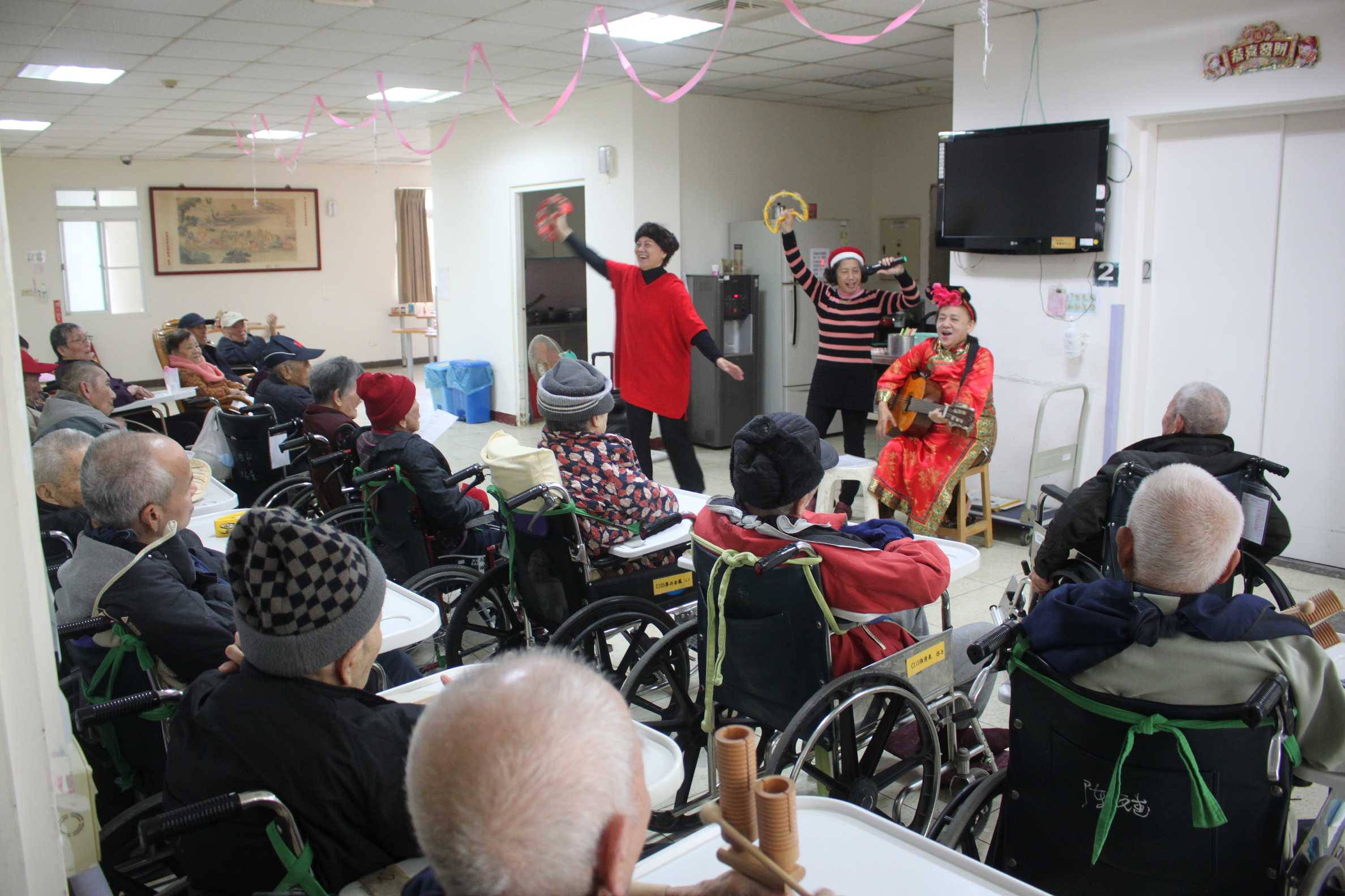 新生代陽光藝術工作坊高曼莉老師來家慰問住民,表演中國風的歌舞和帶動唱,充滿熱情與活動的表演,溫暖了長輩的心。