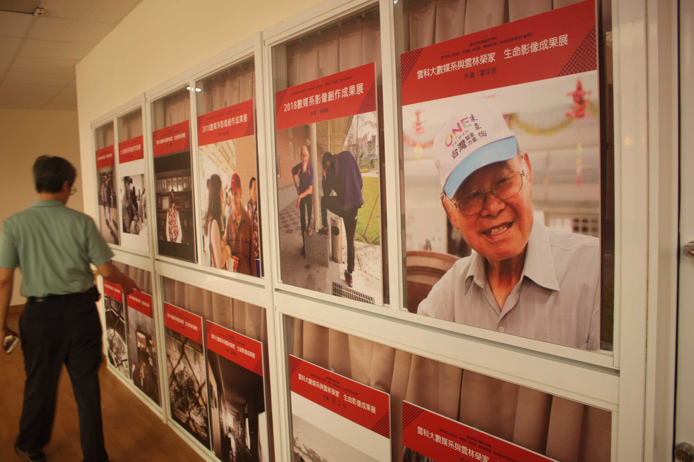 雲科大數位媒體設計系課程陳思聰等三位老師,帶學生們利用課間來參觀本家忠靈祠和家區,拜訪住民並留下影像成果,於學期末將攝影成果產出辦理「生命影像成果展」,共展出25幅大張相片,經老師和同學票選出金、銀、銅牌與優等,裡面有好幾張住民的生活相片,除了牆上的作品展示,還製作「個人紀念影像」送給被拍攝的長輩作為回憶與紀念。 本家吳錦勳副主任稱許學生的作品充滿生命力與意涵,其中一張忠靈祠塔位的作品,勾起了副主任年輕時服務外住榮民辦理善後的回憶,相當感動,特別感謝老師及同學們將學科作品與榮民的生命經驗結合,期望能長期與雲科大師生產學合作,進行服務與學習的活動。 相關照片