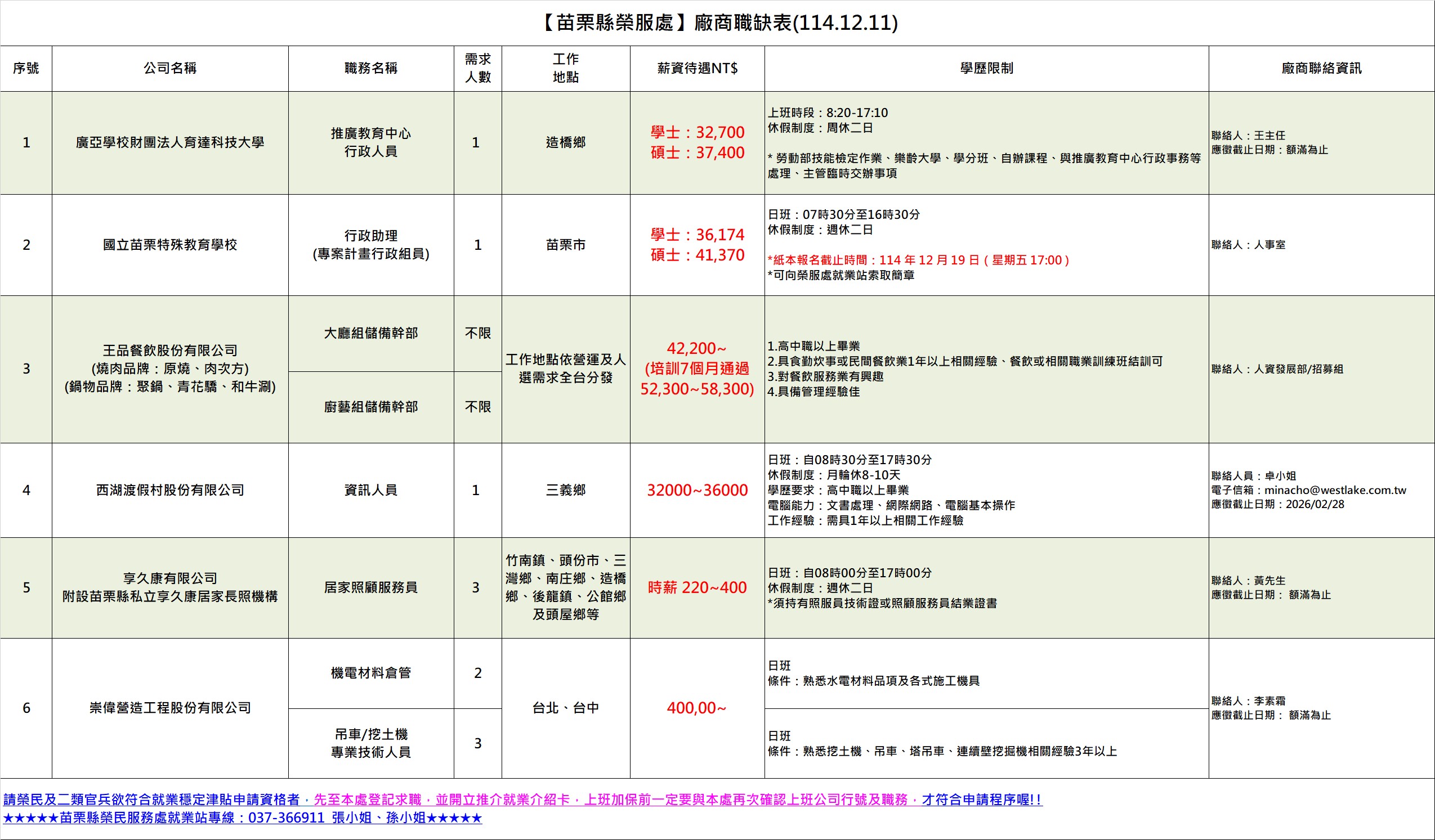 | 苗栗縣榮服處 廠商職缺表 1141211.pdf | 114-12-11 | 6 |