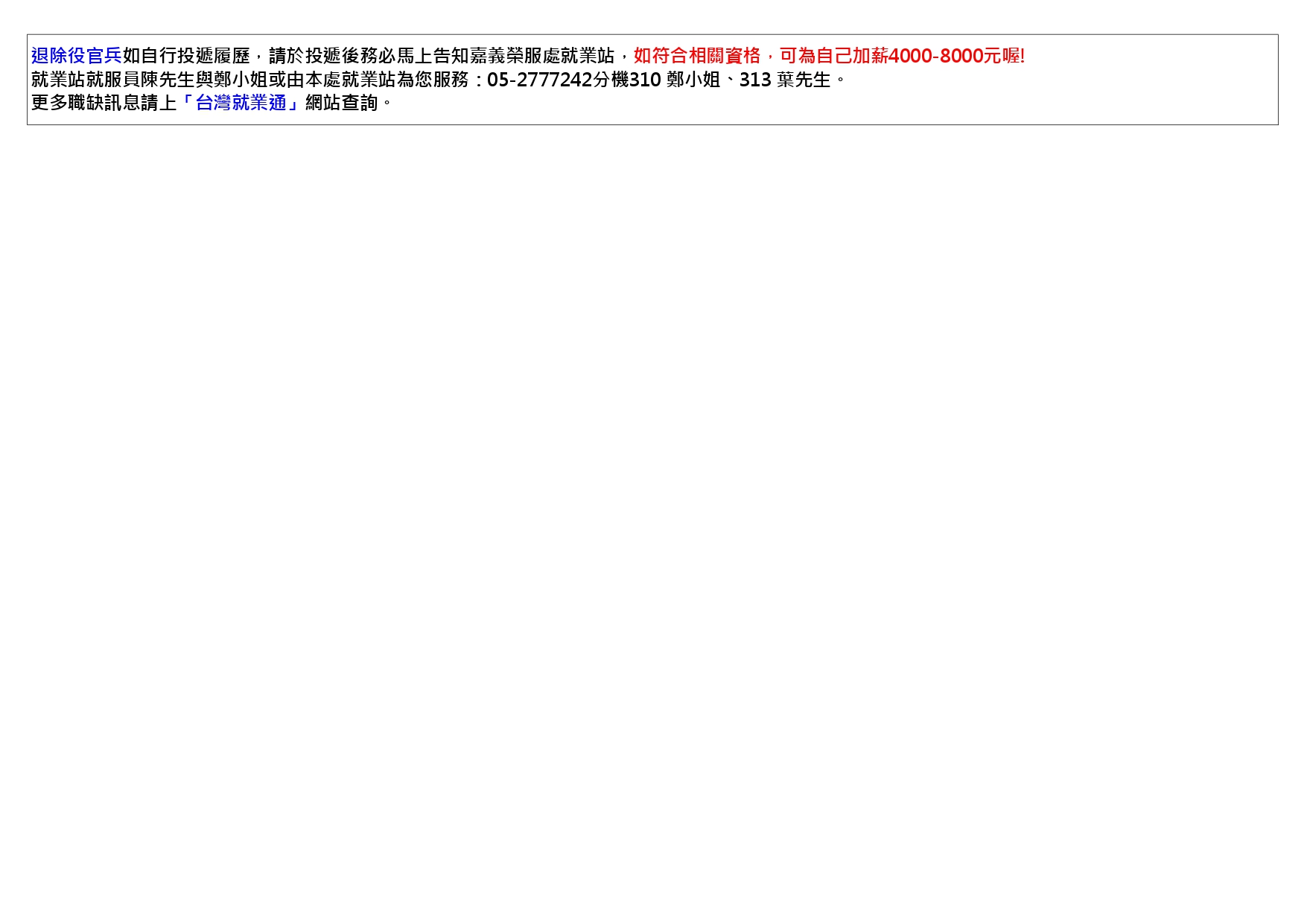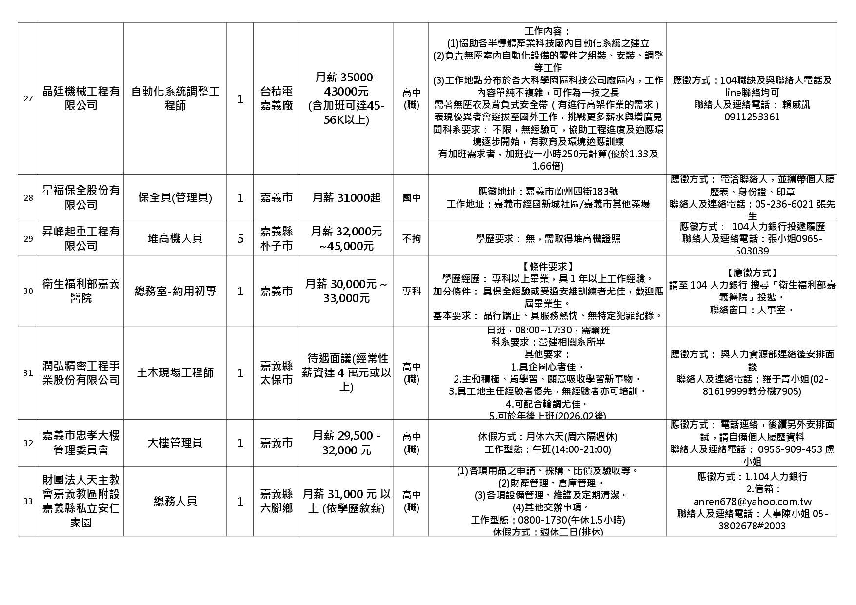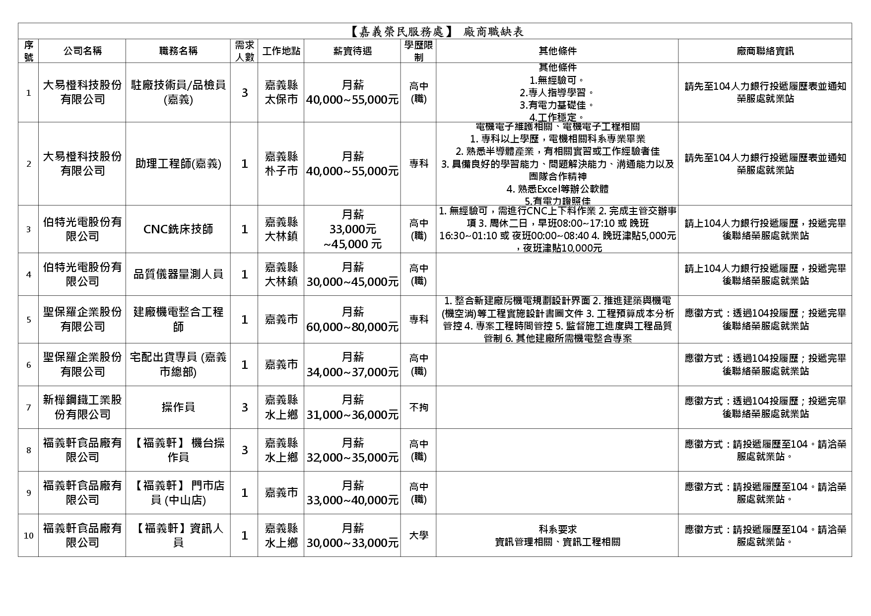 | 【嘉義榮服處】廠商職缺表(115.01.22).pdf | 115-01-22 | 5 |