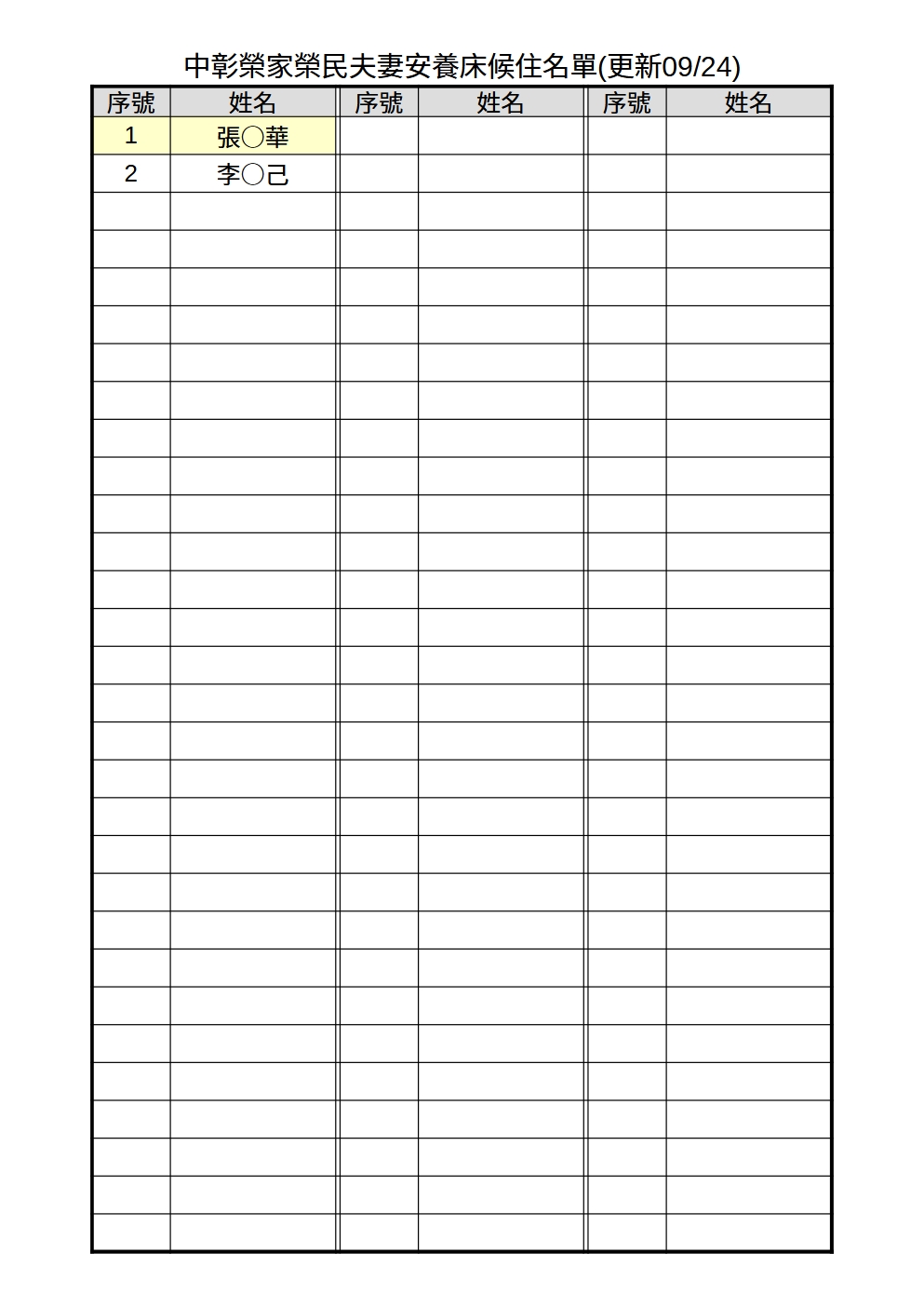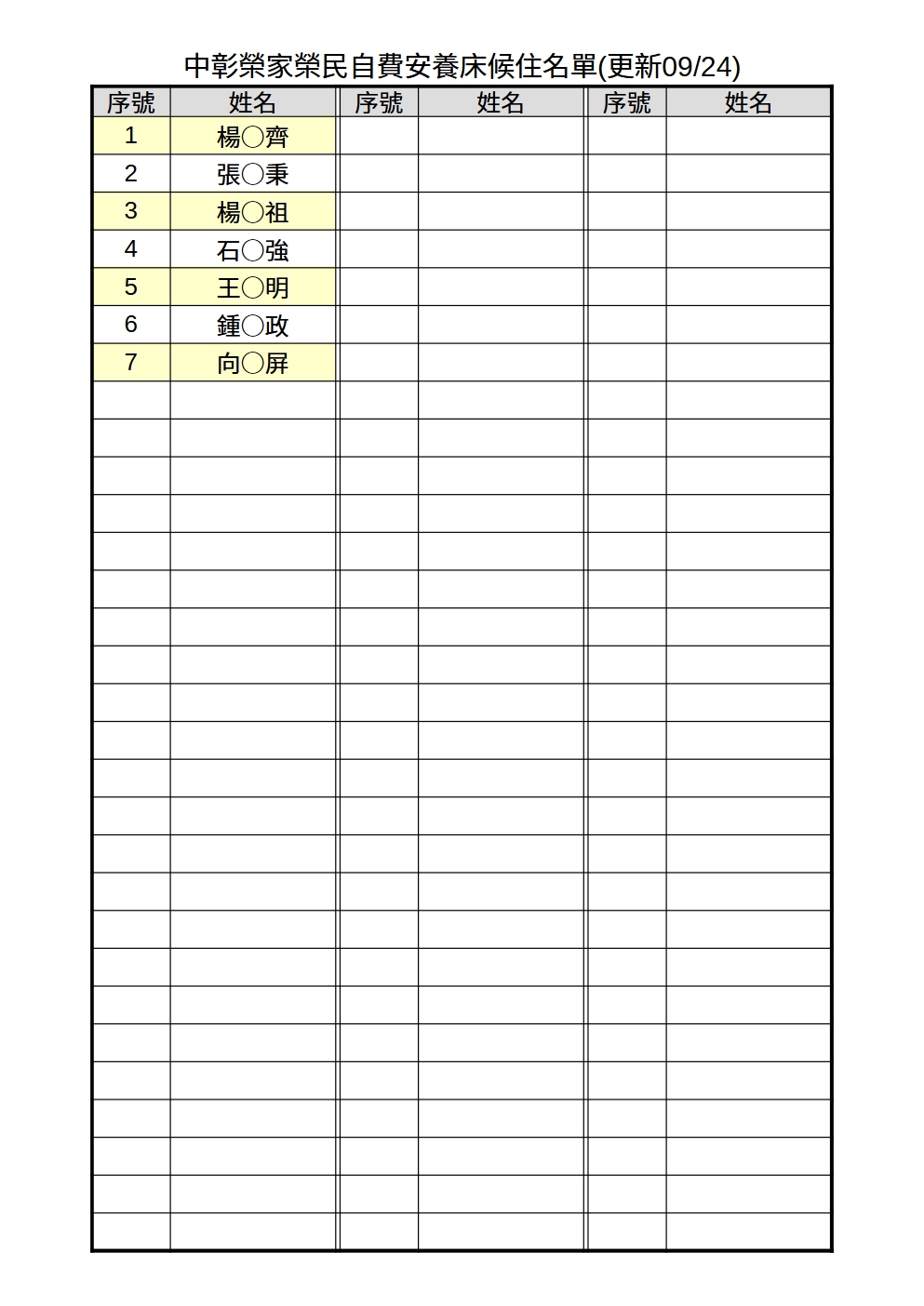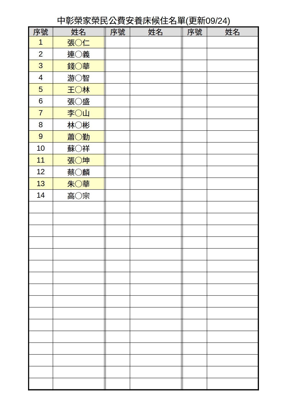 一、安養床位小計325床: (一)個人安養床位小計305床: 1.公費榮民安養床位計105床。 2.自費榮民安養床位計81床。 3.一般民眾安養床位計119床。 (二)夫妻安養床位小計20床。 二、失能養護床位小計30床: (一)公費養護床位計14床。 (二)自費養護床位計16床。