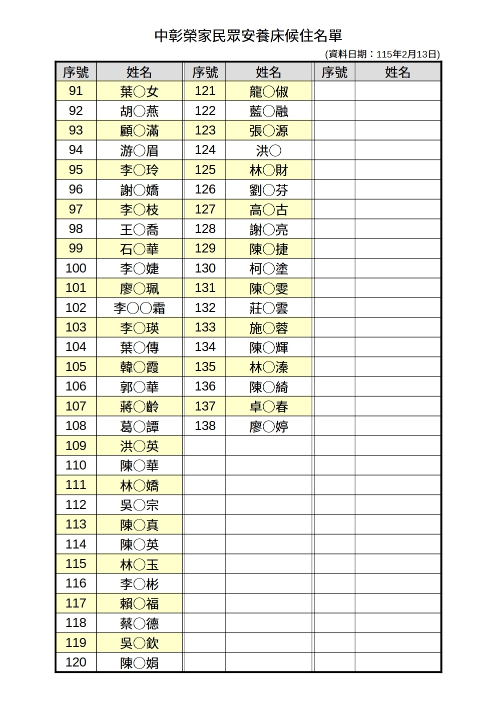 中彰榮家115年3月份候住名單-民眾自費91-180