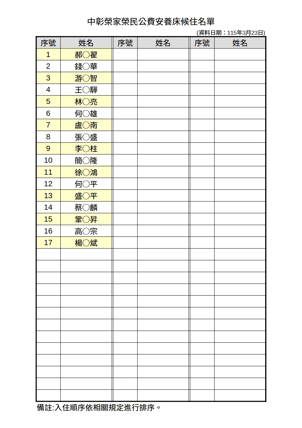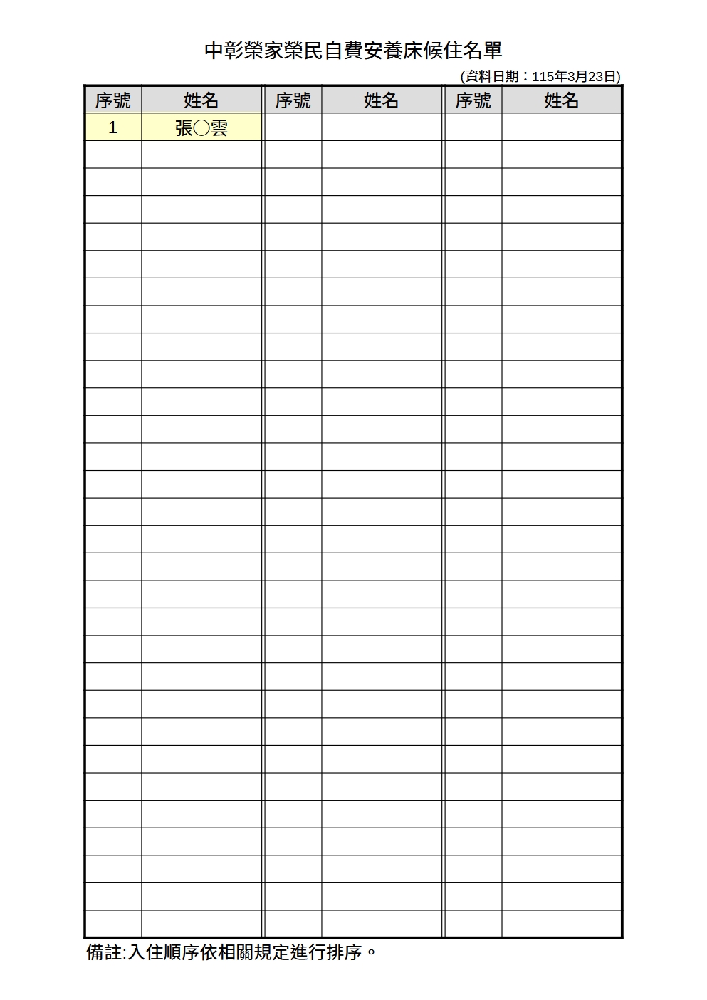 中彰榮家115年4月份候住名單-榮民公費安養