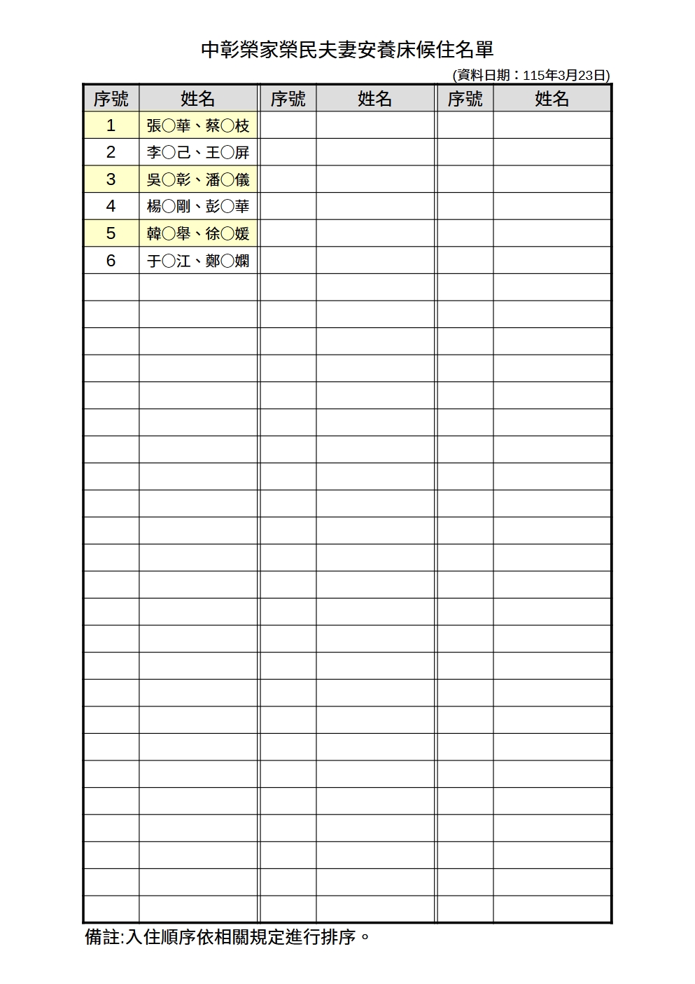 中彰榮家115年4月份候住名單-民眾夫妻