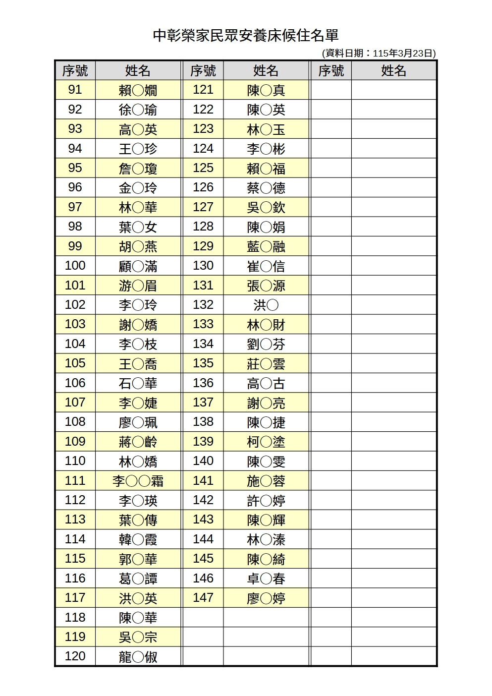中彰榮家115年4月份候住名單-民眾自費91-147
