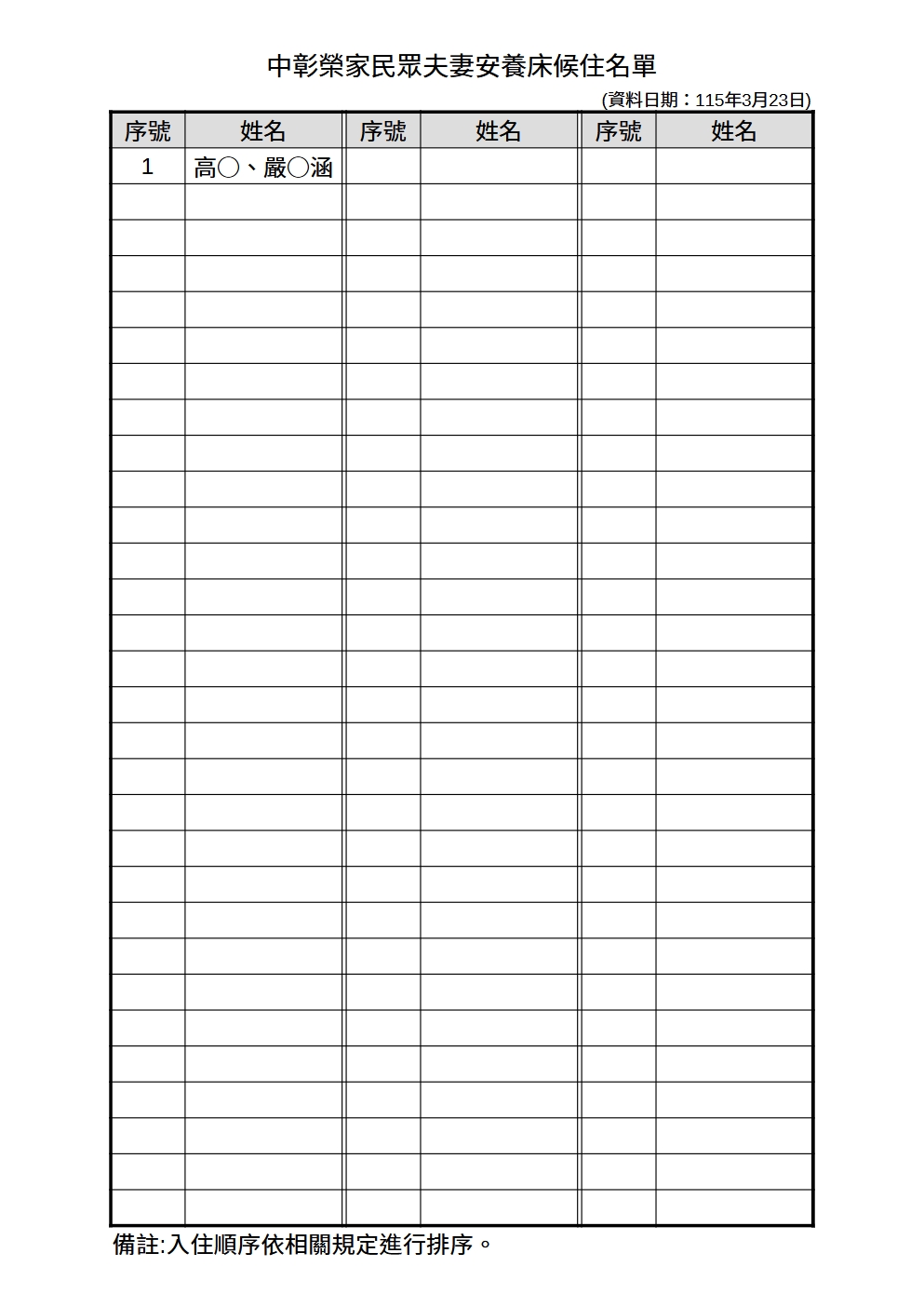中彰榮家115年4月份候住名單-榮民夫妻安養
