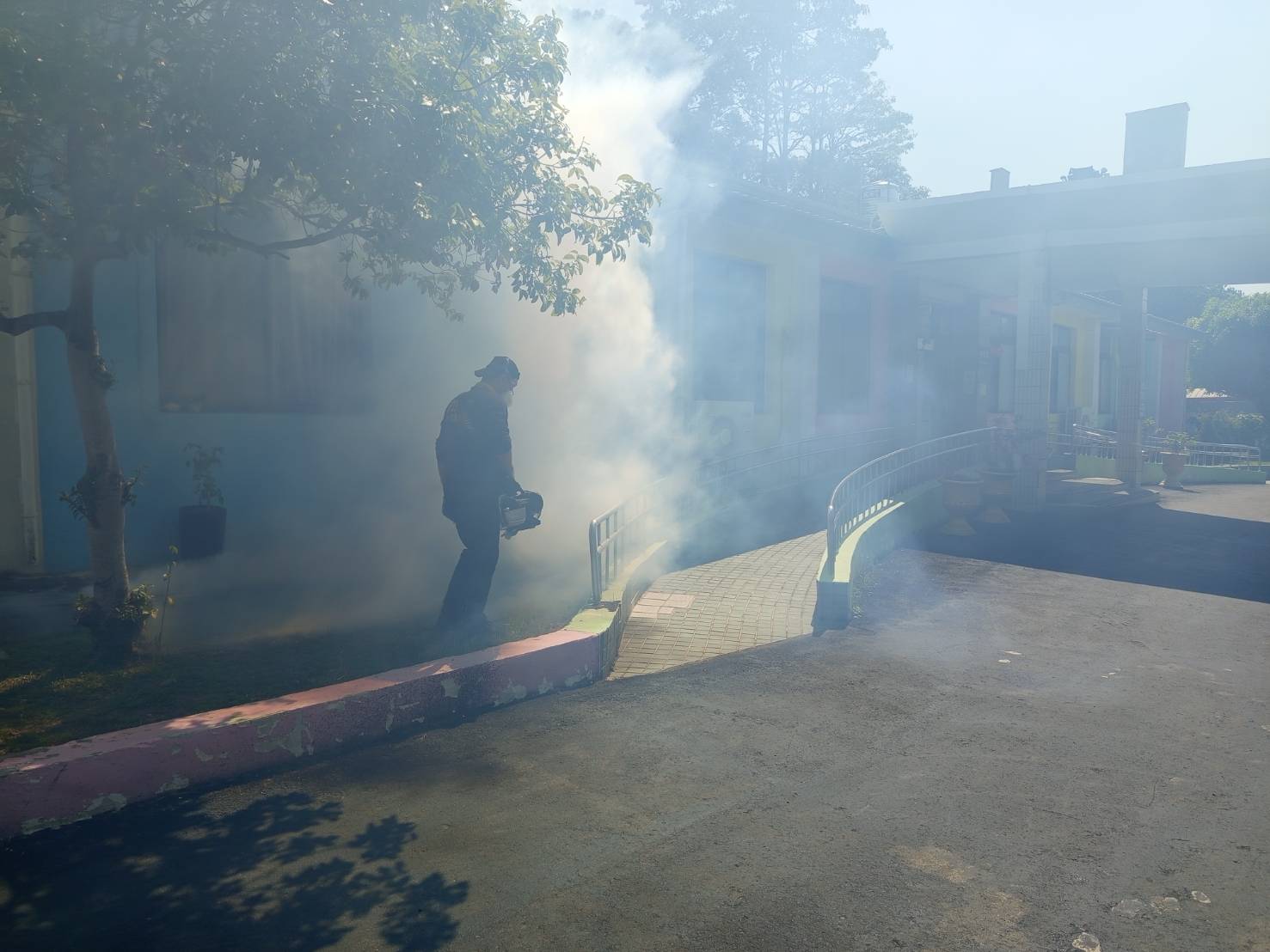 天氣逐漸轉熱,登革熱疫情持續升溫,中彰榮家為有效預防登革熱傳播與病媒源孳生,近日委請廠商實施家區環境消毒作業,在全家區室內外、排水溝渠、住民房舍等區域,進行防治病媒蚊工作,另全家區動起來,執行清除孳生源「巡、倒、清、刷」,以防治登革熱及其他傳染疾病之發生。