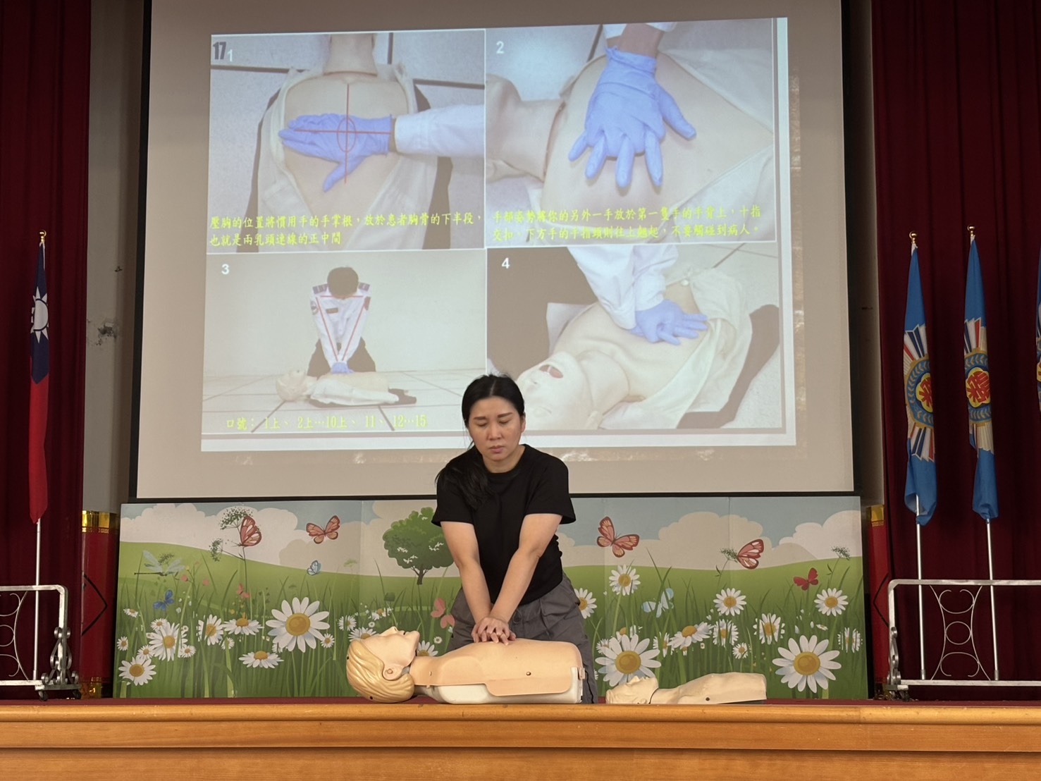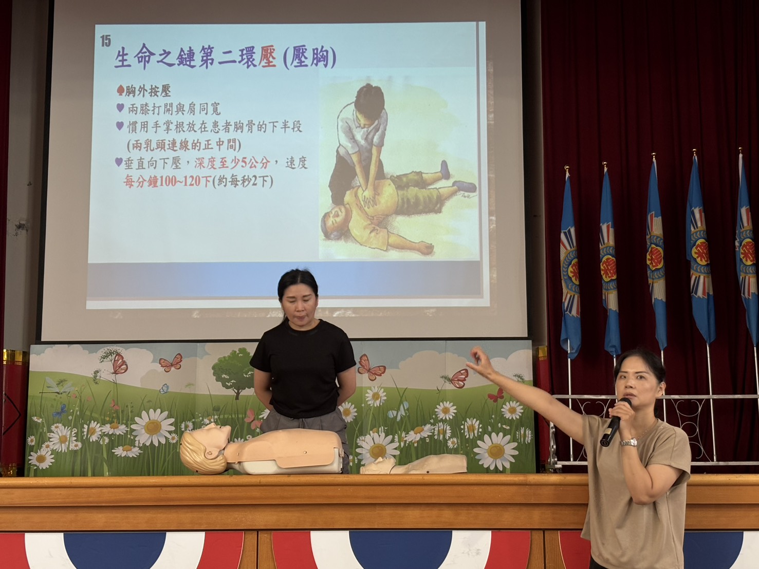 中彰榮家位處八卦山風景區,鄰近中彰投都會區,是老人安養機構首選之一,考量長者身體機能退化,多數有慢性疾病,在生活中隨時都可能發生突發緊急狀況,故榮家在適當處所設有AED(自動體外去顫器)號稱傻瓜電擊器,俾利工作人員使用,適時有效發揮緊急救護效能,以確保住民生命安全。 為了讓榮家所有工作人員更加熟練CPR(心肺復甦術)結合AED使用方法,榮家於今(11)日邀請臺中榮總埔里分院副護理長張家熒指導CPR和AED教育訓練課程,藉由講師的臨場經驗分享及實際的技術教導、課後急救技術測驗,職員工及照服員都很認真的參與實作訓練。在講師示範操作及指導下,藉由無意識及生命徵象的安妮,讓職員工及照服員深刻記住在進行CPR前要先確認三個安全「環境安全、施救者安全,患者安全」才能進行急救,並熟記「叫、叫、C、A、B、D」流程;並且在使用AED的時候,也要記住「開、貼、插、電」的順序,尤其在電擊前,一定要提醒周遭的人員離開患者,依照AED語音指示進行操作,整個急救過程,口訣簡單易懂,讓工作人員學習起來清楚好記。 心臟疾病高居全國十大死因的第二位,成人猝死最常見的就是心室顫動,當昏倒失去意識,甚至失去脈搏、心跳,若沒有及時以CPR+AED進行急救,則存活率每分鐘下降7到10%推廣急救技術,於發生意外或疾病可及時搶救寶貴生命,提升到院前存活率。 呂德義主任表示:榮家住民甚多年邁體弱,全天24小時除了護理專業人員三班輪值守護外,另有職員工輪班值勤支援協處,為了可在第一時間提供急救措施,每年藉由教育訓練提升知能及技術熟練,未來一旦發生緊急狀況,可在緊要關頭爭取急救黃金時間,提升挽救生命機會,以營造更安全的居住環境,讓住民們能安心居住,在榮家樂活老化、健康老化。