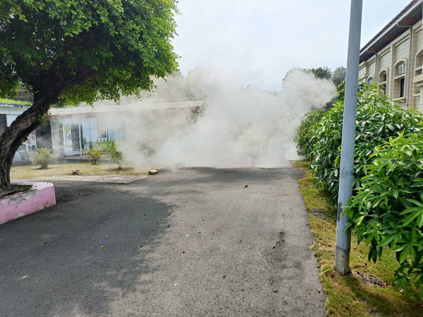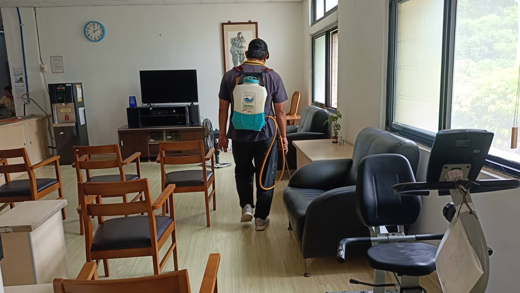 時序已進入秋天,但本土登革熱仍有出現群聚疫情,衛福疾病管制署(CDC)統計登革熱病例,今年已累計181病例數,而中部地區近來午後強降雨所造成之斷枝、樹葉等堆積的地方正是病媒蚊最適合繁殖的潮溼環境,中彰榮家為防範災後病媒蚊的繁殖及傳染威脅,於近日委託病媒蚊專業廠商展開全家區消毒作業,以嚴格的防疫標準實施煙薰消毒,在全家區室內外、排水溝渠、綠地、植栽區及住民房舍等區域,進行防治病媒蚊工作,另全家區動起來,執行清除孳生源「巡、倒、清、刷」,以防治登革熱及其他傳染疾病之發生 住民張先生表示,中彰榮家的環境衛生維護的非常好,定期都會進行樹木修剪及環境消毒工作,在執行前都會張貼公告及廣播呼籲;此次進行環境消毒工作,住民也配合執行滅孓4招—「巡、倒、清、刷」的工作,尤期房內的盛水容器,例如盆栽、水瓶進行換水及洗刷,是最常被忽略之處,我們也會彼此提醒,以避免影響家區住民之健康。 中彰榮家家主任呂德義表示,榮家採最嚴格的防疫標準來避免病媒蚊滋生及防治登革熱傳播,除定期委請委外公司辦理環境消毒工作;防治病媒治本之道,就是落實巡視居家環境,徹底清除積水容器,做好防蚊措施;也感謝住民主動配合將自己生活區域的盛水容器進行洗刷工作,大家齊心做好病媒蚊孳生源清除,共同維護家區環境衛生,守護住民及工作人員健康,也營造一個友善、健康生活空間。