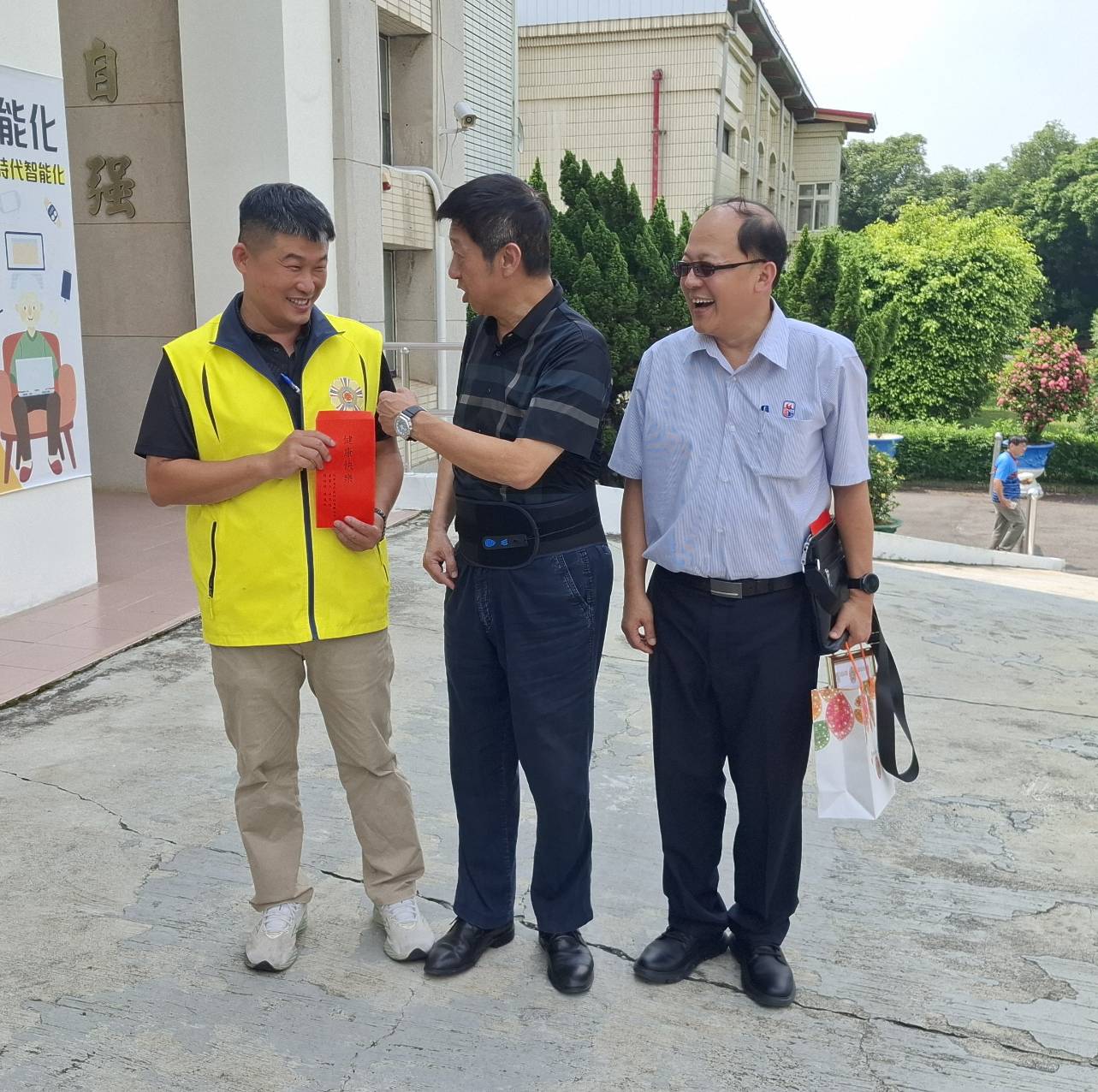 秋節是國人重視的傳統節日之一,為讓榮家長輩於節慶前感受社會各界對於長者的關懷與重視,欣中天然氣公司陳曉明總經理特別於今(2)日帶領公司等一行人來到中彰榮家,代表公司捐贈秋節慰問金及禮券,表達對榮家長輩的溫馨關懷。並在榮家最具標誌性的建築物「中正堂」前致贈慰問金及禮券予榮家長輩。陳總經理也親切慰問長輩的生活起居,握手寒暄、閒話家常,了解長輩們在榮家的生活情形,關心之情溢於言表,現場氣氛無比溫馨。 陳曉明總經理表示,秋節是國人重視的傳統節慶,值此秋節前夕,特別代表欣中天然氣公司來到榮家關懷曾為國家奉獻的榮民長輩們,並獻上崇高的敬意,感謝榮民前輩為國家社會奠立安定與繁榮的基礎。看到榮家對於長輩們無微不至的照顧以及團隊真誠、友善的服務態度,讓長輩能夠在頤養的年紀,享受著榮家完善的服務照顧品質,內心感到相當慰藉與認同。在此也預祝榮家長輩秋節快樂,希望每一位長輩都能以愉快的心情的在榮家度過每一天。陳總經理此行遇到一位工作同仁竟是以前在軍中舊部屬,特地致贈慰問禮券,讓現場氣氛更為溫馨。 榮家主任呂德義表示,欣中天然氣公司長期致力榮民(眷)的關懷與服務,並適切提供榮家各項資源與協助,每遇重要節慶都以實質行動回饋榮家,使本家能有更充足的資源來提升長輩的服務照顧品質。再次感謝欣中公司陳總經理於秋節前至榮家關懷長輩,讓榮家長輩能充分感受到社會各界的溫馨與關懷,榮家也將不負各界的期望,持續致力於長者服務工作,營造完善、友善及和諧的長者頤養環境。