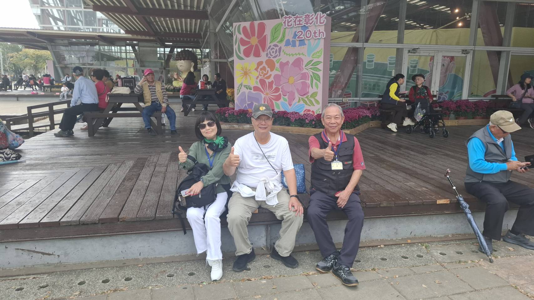 當日一早,長輩們搭乘著榮家的巴士,來到「彰化百寶城」活動所在地「溪州公園」,一下車映入眼簾的即是高達九米的大型穹頂《繁花之頂》的竹構空間,大會舞台前更有社區民眾跳舞、打鼓、唱歌熱鬧不斷,長輩們呼朋引伴地拿起手機爭相拍照。接續,在榮家主任的帶領下,一行人來到「花精靈物語館」欣賞彰化五大農業主題的花藝布置,搭配五感體驗,探索彰化農業生命力。現場除了盛開的花卉藝術展,還有彰化優鮮農特展、特色工商產業展、美食展、各式團體舞台表演、園區尋寶遊戲等精彩活動,場面熱鬧非凡,長輩們更是徜徉在鳥語花香的活動氛圍之中,玩得不亦樂乎!