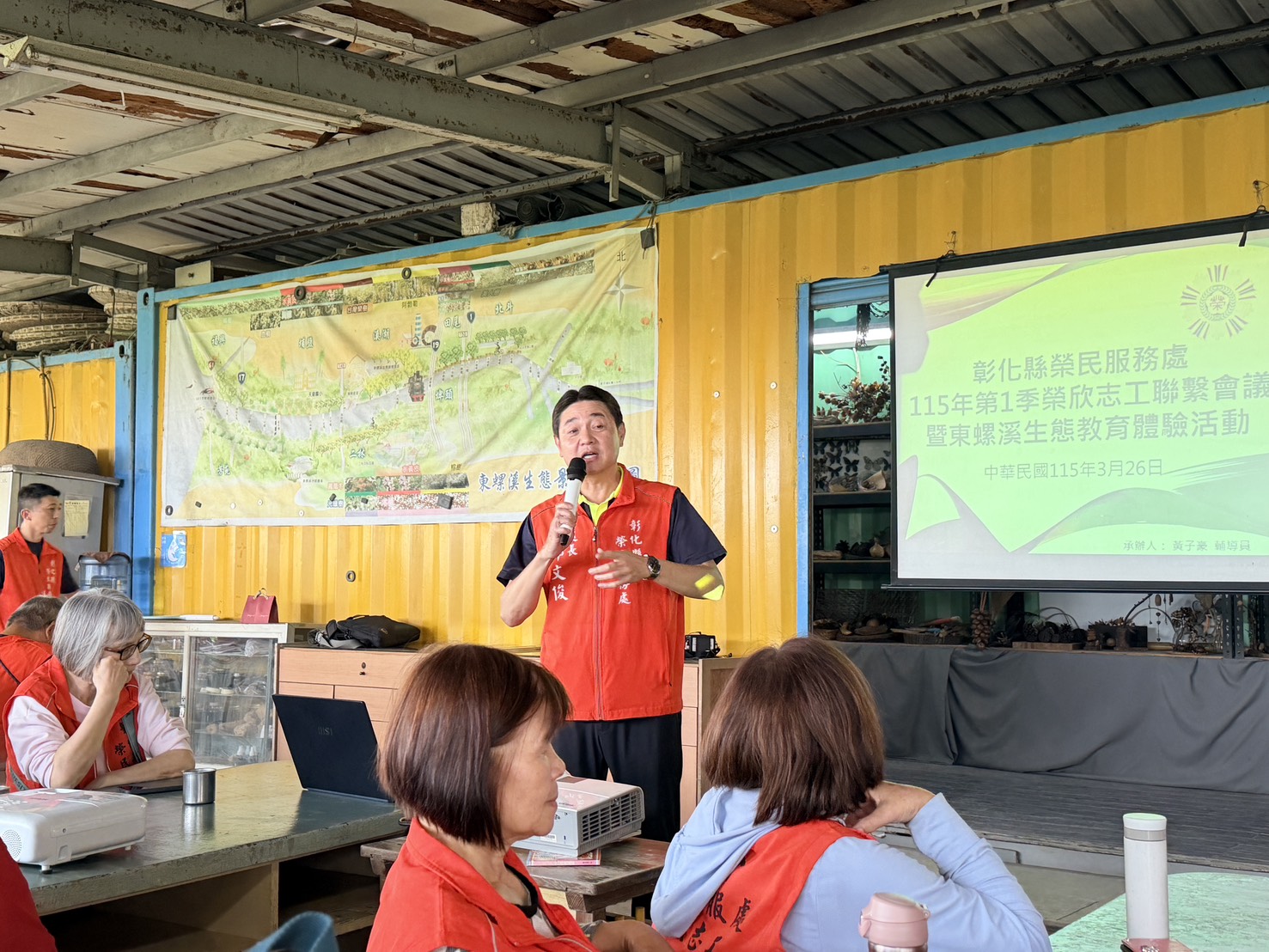 為凝聚志工向心力並深耕環境教育,彰化縣榮民服務處近日在彰化溪湖東螺溪生態教育園區,舉辦「守護溪畔.志工同行—第一季志工聯繫會議暨生態體驗活動」。本次活動特別透過湖埔社區大學引薦,由處長邱文俊帶領 40 位榮欣志工走進大自然,透過導覽解說與手作體驗,在關懷榮民眷之餘,也見證彰化母親河的生態復育奇蹟。 在湖埔社大執行長林淑玲及其團隊的專業導覽下,榮欣志工們漫步於東螺溪生態教育園區,深入了解在地水岸環境的演變與自然保育的重要性。處長邱文俊表示,榮欣志工平日穿梭巷弄服務榮民眷,體力與心靈的調適至關重要,藉由親近這片充滿韌性的「綠色生命力」,不僅能幫助志工舒緩壓力,更能提升對在地生態環境的認同感,儲備服務能量。 隨後,活動安排了深具在地特色的「杭菊凍手作體驗」,讓志工們在互動中感受手作樂趣,緊接著召開「第一季志工聯繫會議」並進行「志工交流分享」,大家針對服務個案及訪視技巧展開熱烈探討。邱處長強調,志工是榮服處服務延伸的最前線,如同東螺溪的復育需要細心灌溉,志工服務也需不斷精進與意見交流,才能溫暖守護每一位榮民袍澤。 參與志工紛紛表示,這種走出戶外、結合在地生態資源與手作體驗的會議形式讓人耳目一新,不僅增進了隊友情誼,更在經驗分享中收穫滿滿。最後,邱處長更進一步表示,榮服處未來將持續秉持「榮民在哪裡,服務就在哪裡」的精神,攜手榮欣志工,為地方榮民眷提供更具深度與溫度的優質服務。 相關照片
