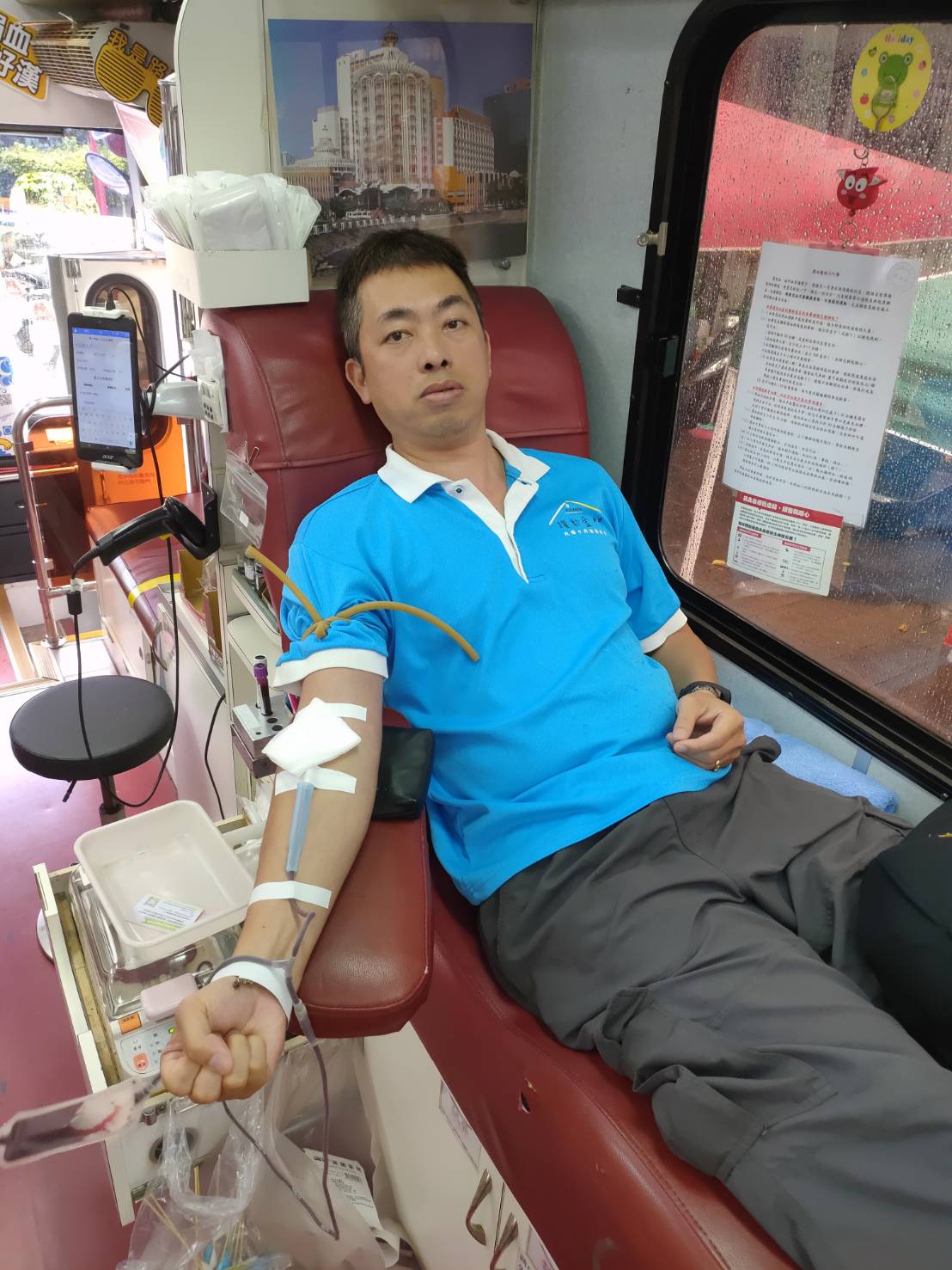 金門縣榮服處今(10)日動員榮欣志工參加台北捐血中心,於金湖鎮新市里籃球場舉辦「快樂捐血、愛在金門」活動,本次活動於6月2日開始舉行,今日是活動最後一天呂處長特別到場與來響應「捐血一袋、救人一命」的志工夥伴加油打氣。 金門地區因捐血人數不足,捐血中心自95年撤離金門,隨後改以1年2次或每2年1次派員來金門辦理捐血活動,這次活動與前次已逾半年,活動前地區各機關也運用各種管道宣傳,呂處長表示捐血活動看似一件最簡單的公益,但其功效往往發揮在最緊要關頭救人一命,因此對捐贈者有嚴格篩選條件,並非每個人都適合捐,這次除了向員工宣導外也運用本處網頁協助推播資訊,動員榮欣志工踴躍參加活動。 此次活動本處員工及榮欣志工計10人參加,部分人員也分批於日前至各鄉鎮捐血,服務於金城責任區的莊輝煌與李錫銓2位組長,率先於6月4日自行前往金寧鄉參加捐血活動,其謙虛的表示自己本來就有維持捐血的習慣,更希望所捐熱血能救人一命,目前任職金寧鄉代表榮民鍾尚志,自服役於憲兵單位時便有持續捐血的良好習慣,現在幾乎每半年都會定時參加金門地區捐血活動,每當遇到有想要捐血的人問起相關細節,都會耐心地解說並推廣,也希望能起帶頭作用吸引大眾投身快樂捐血人行列。 最後呂處長除感謝默默付的志工夥伴,也感謝退除役官兵攘臂捐出熱血,更期待下次活動能有更多人熱心參與,以實際行動來實現「捐血一袋、救人一命」信念。 相關照片