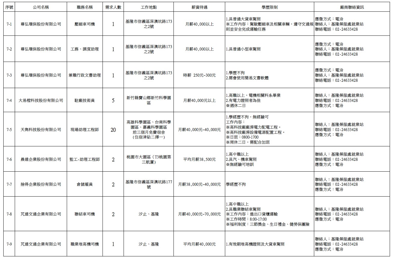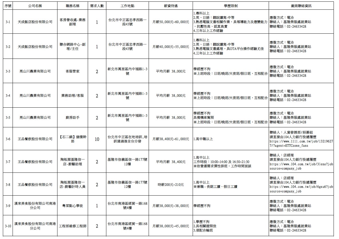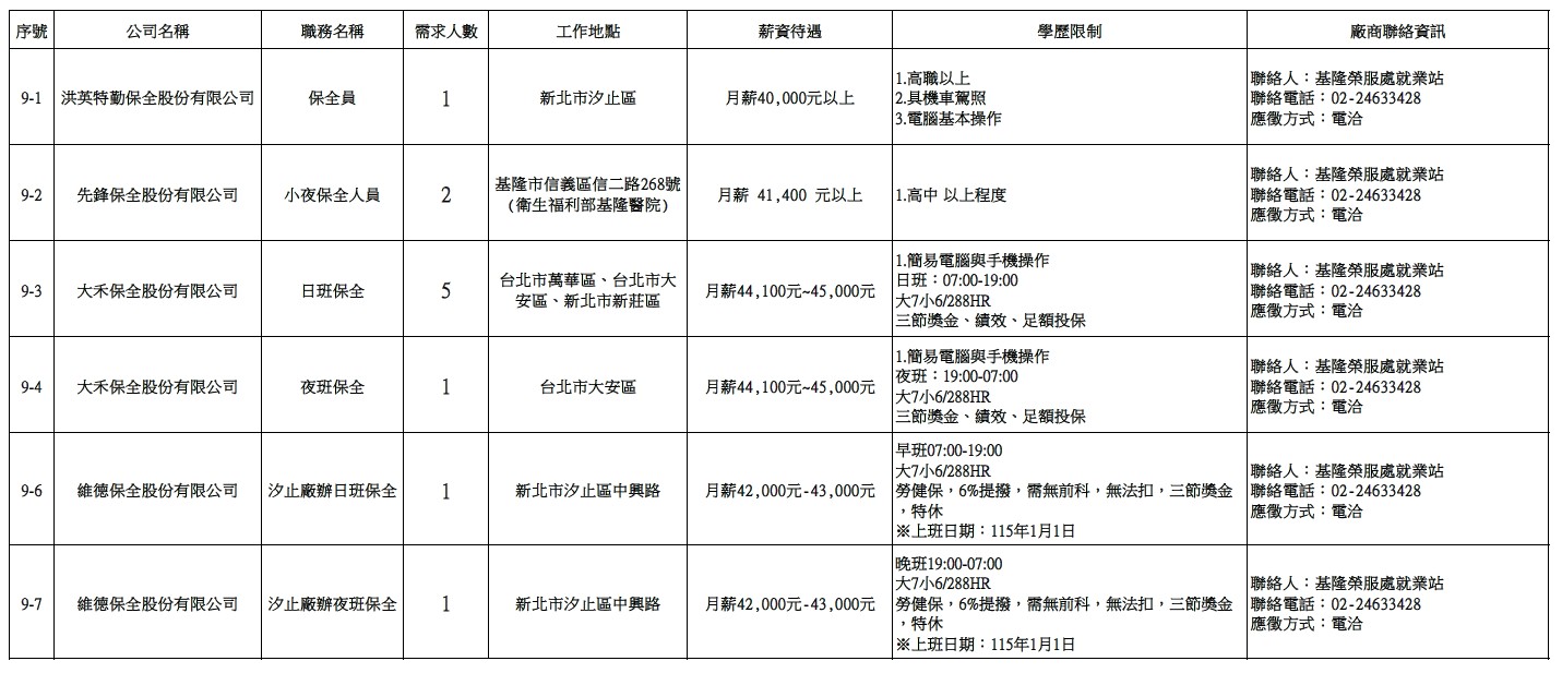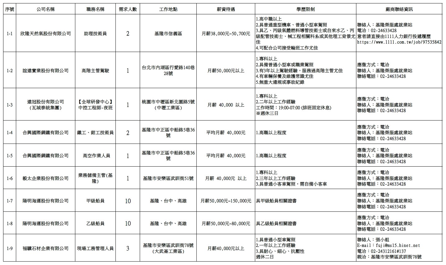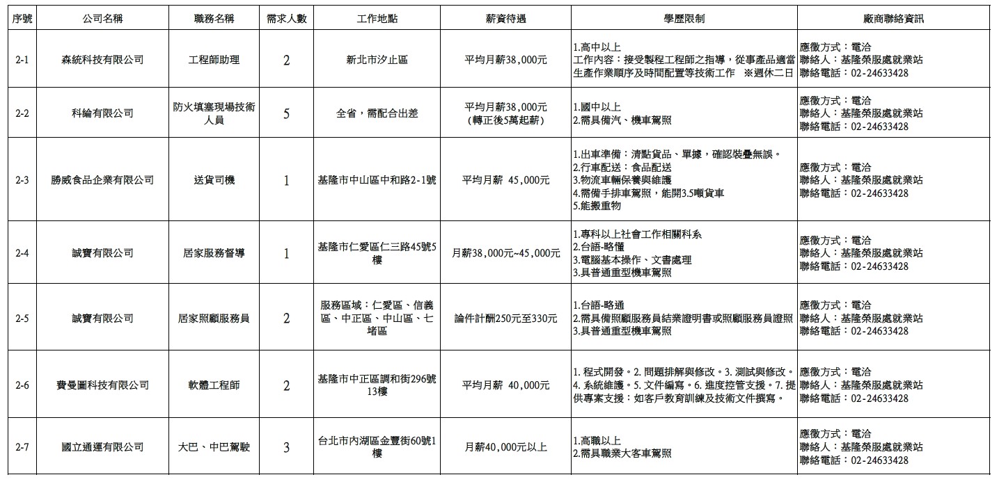 【基隆市榮服處】廠商職缺表(115.04.07)-1